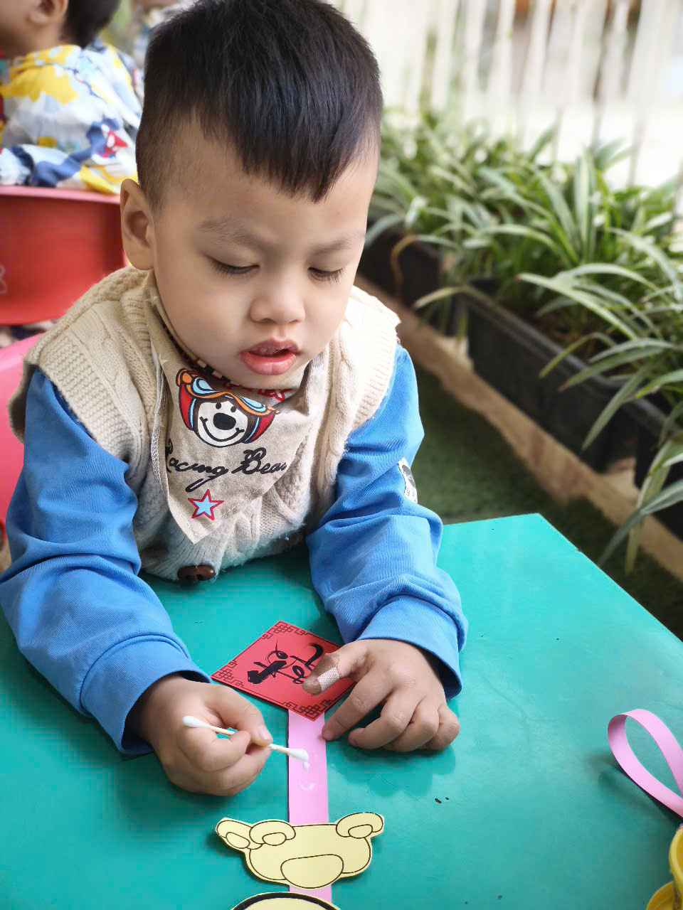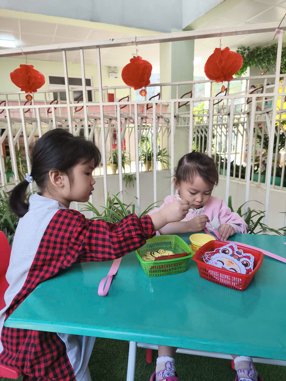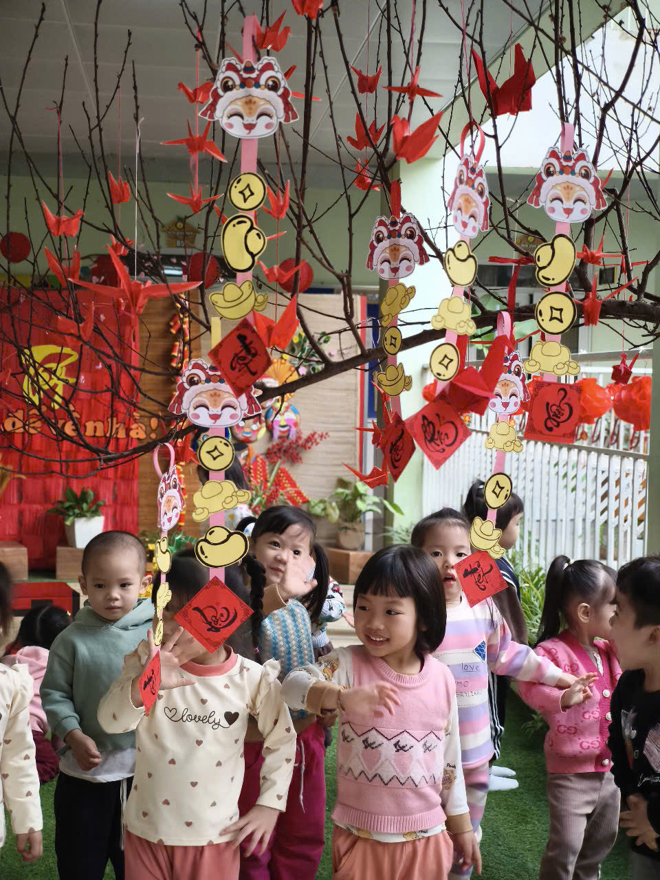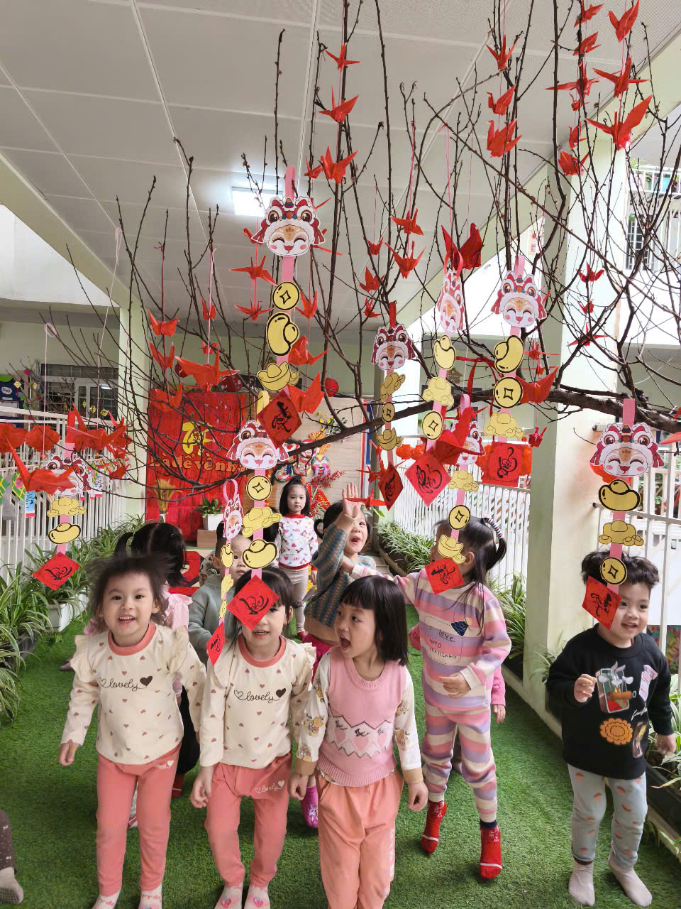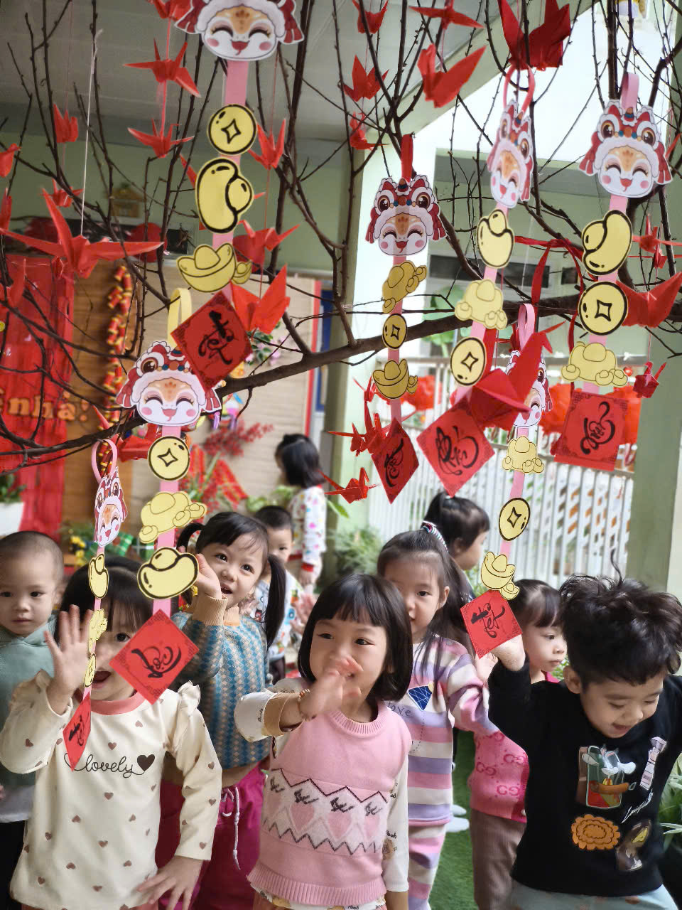 Các bé lớp C2 trường mầm non Họa Mi Ba ĐÌnh trang trí lớp đón Tết