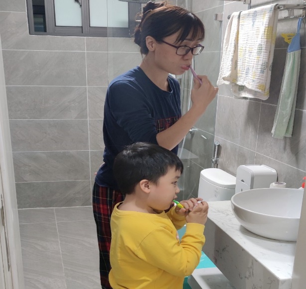 Bé sẽ bắt chước những việc cha mẹ làm và cách ứng xử của cha mẹ trước mọi tình huống. Thay vì hò hét bé dọn đồ chơi, ngay lập tức ngồi bàn ăn, giục bé đánh răng thì cha mẹ hãy là người tiên phong để bé làm theo. Mẹ hãy ngồi xuống và nhặt đồ chơi của bé, nếu bé không ăn gia đình vẫn cứ ngồi vào bàn và ăn, bé không chịu đánh răng thì mẹ hãy cứ đi đánh răng đồng thời “rủ rê” bé cùng vào cuộc. Kiên quyết nhưng vẫn nhẹ nhàng và cho bé cơ hội, đó là bí quyết giúp mẹ đỡ vất vả hơn trong việc dạy con.