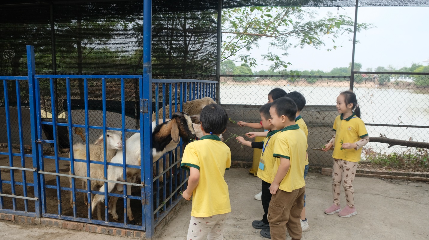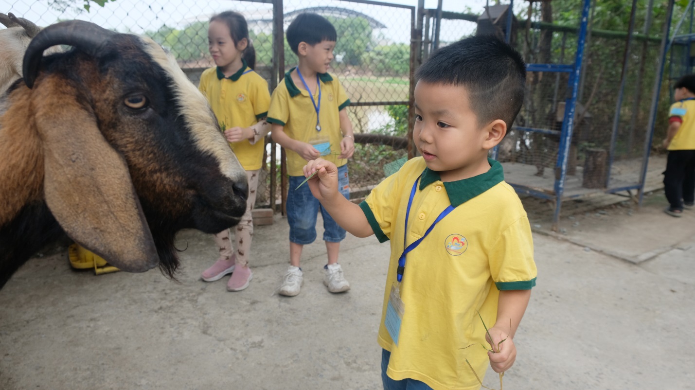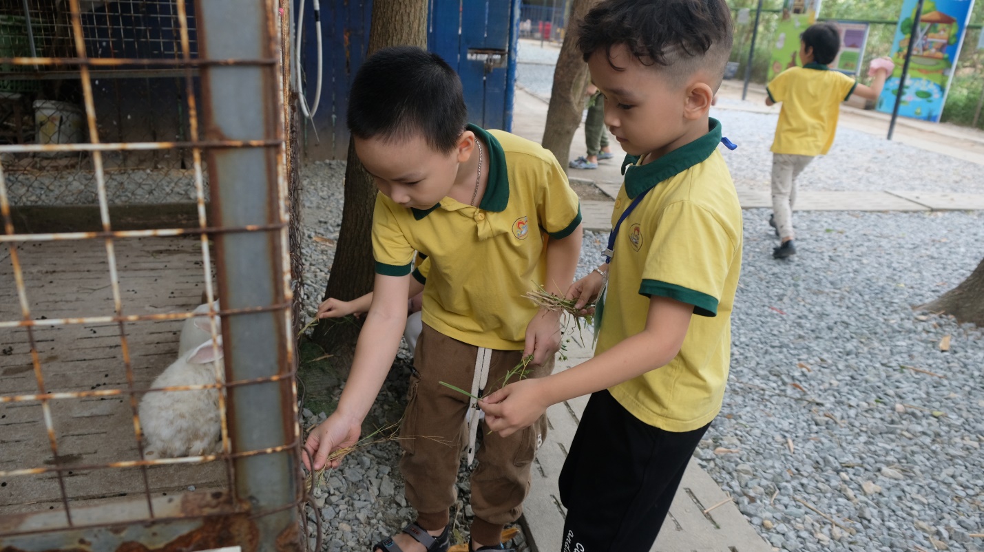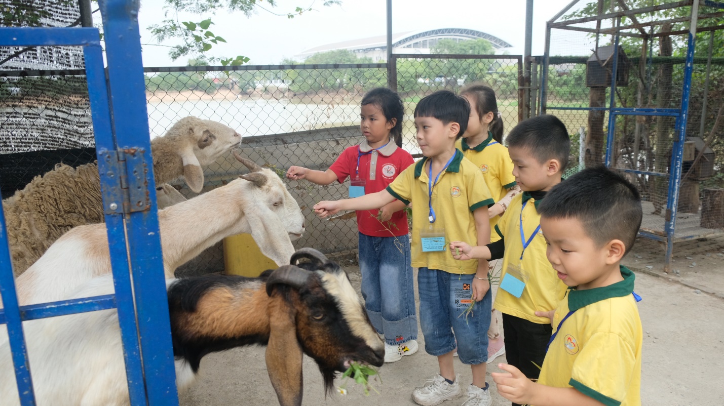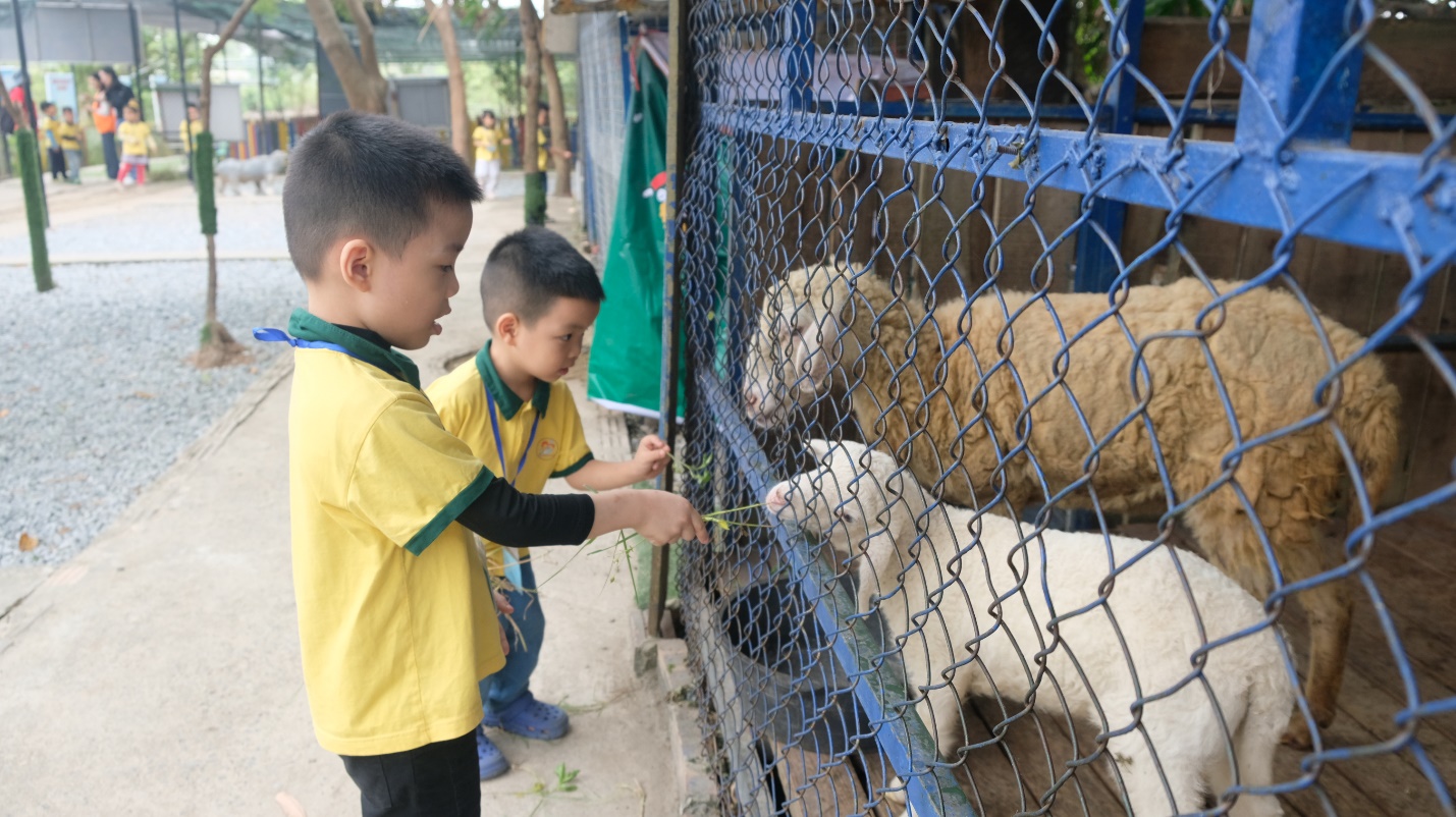 Tiếp đến, khu vực cho các con vật ăn là một trải nghiệm đầy thú vị khi các bé được gần gũi với thỏ, dê, cừu, gà, và cả trâu. Những đôi tay nhỏ xíu nhẹ nhàng đưa thức ăn, vừa sợ sệt vừa thích thú khi nhìn các con vật ăn ngon lành.
