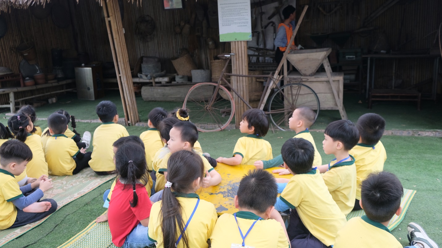 Chuyến đi khép lại với hành trình tham quan Bảo tàng Nông nghiệp. Tại đây, các bé được giới thiệu về các dụng cụ làm nông truyền thống, từ cày, cuốc, đến những chiếc cối xay gạo. Qua những câu chuyện của hướng dẫn viên, các bé thêm hiểu và trân trọng công việc của những người nông dân cần mẫn.