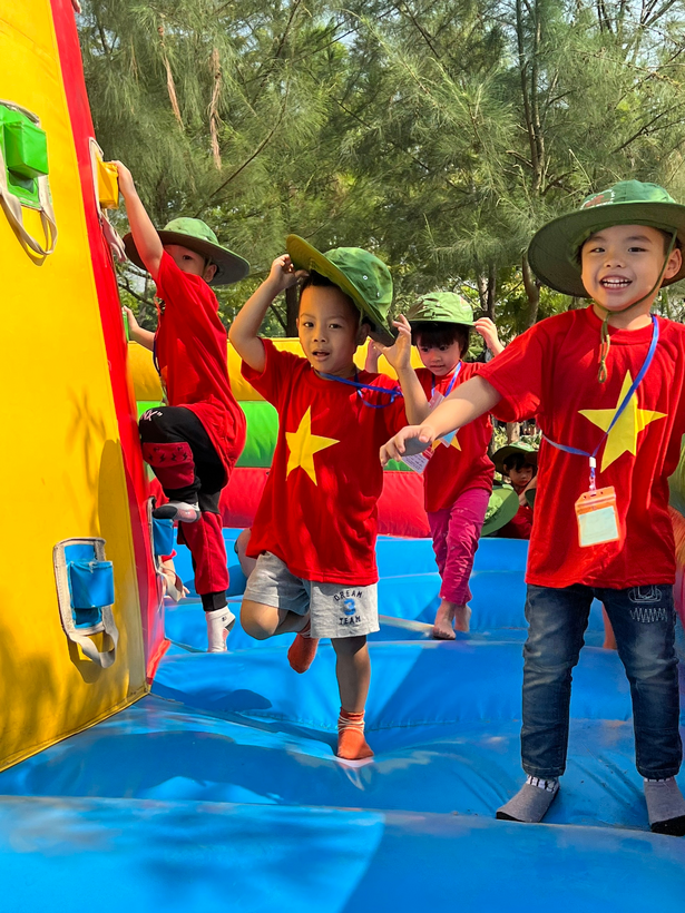 Trẻ thích thú, vui chơi trong nhà phao