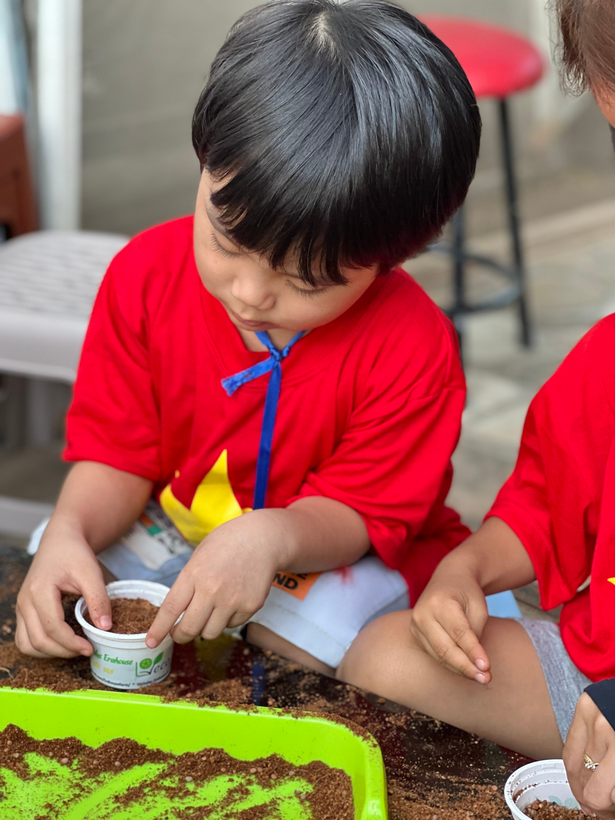 Trẻ được tự tay trồng những hạt mầm nhỏ
