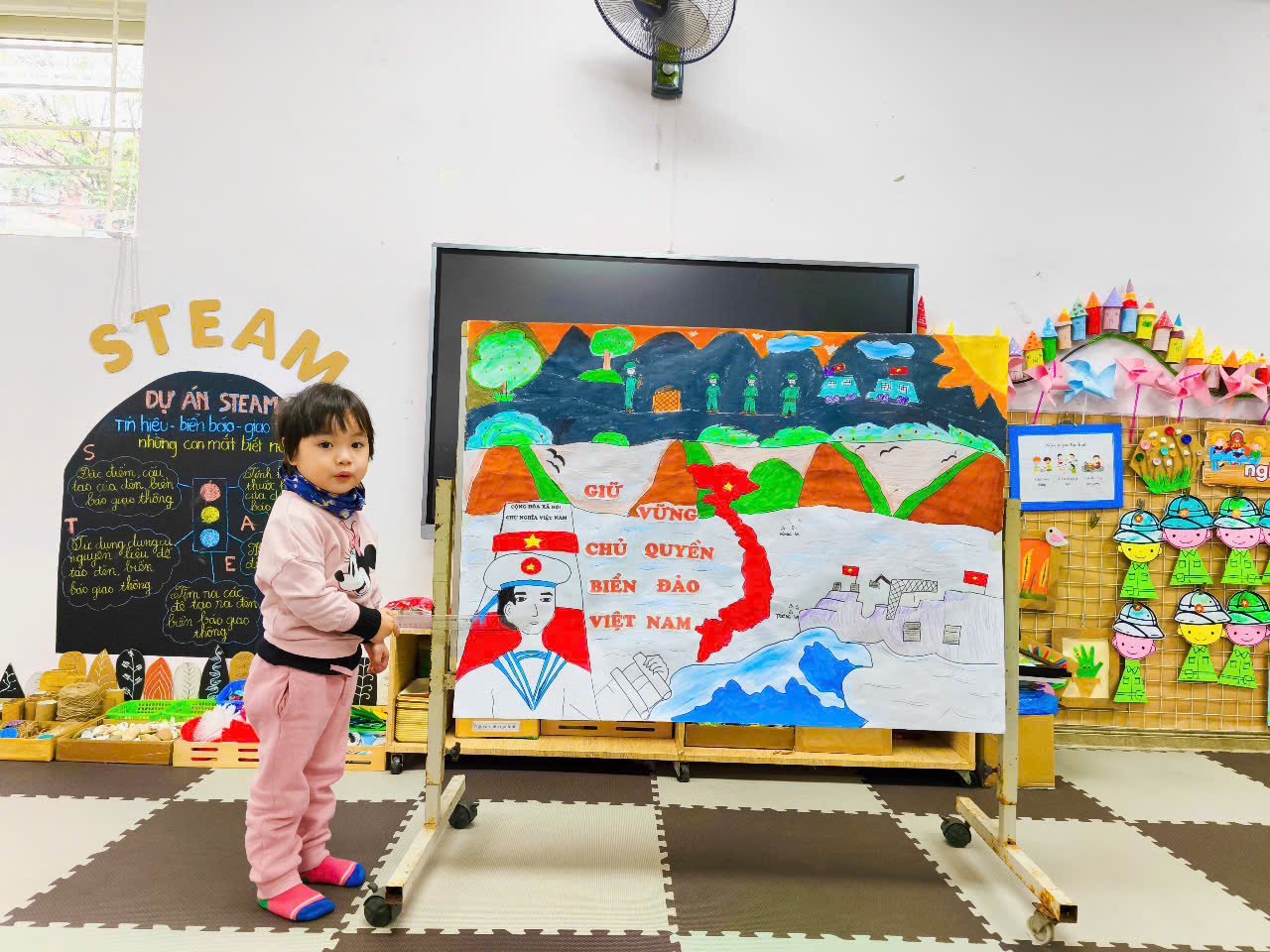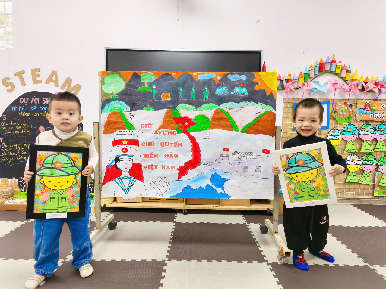 Với chủ đề “Cháu yêu cô chú bộ đội” được diễn ra trong tuần lễ kỉ niệm ngày thành lập Quân đội nhân dân Việt Nam 22/12, các bé lớp MGB C2 đã được tìm hiểu về công việc của các chú bộ đội, ôn lại truyền thống hào hùng của dân tộc, khơi gợi tình yêu quê hương đất nước.