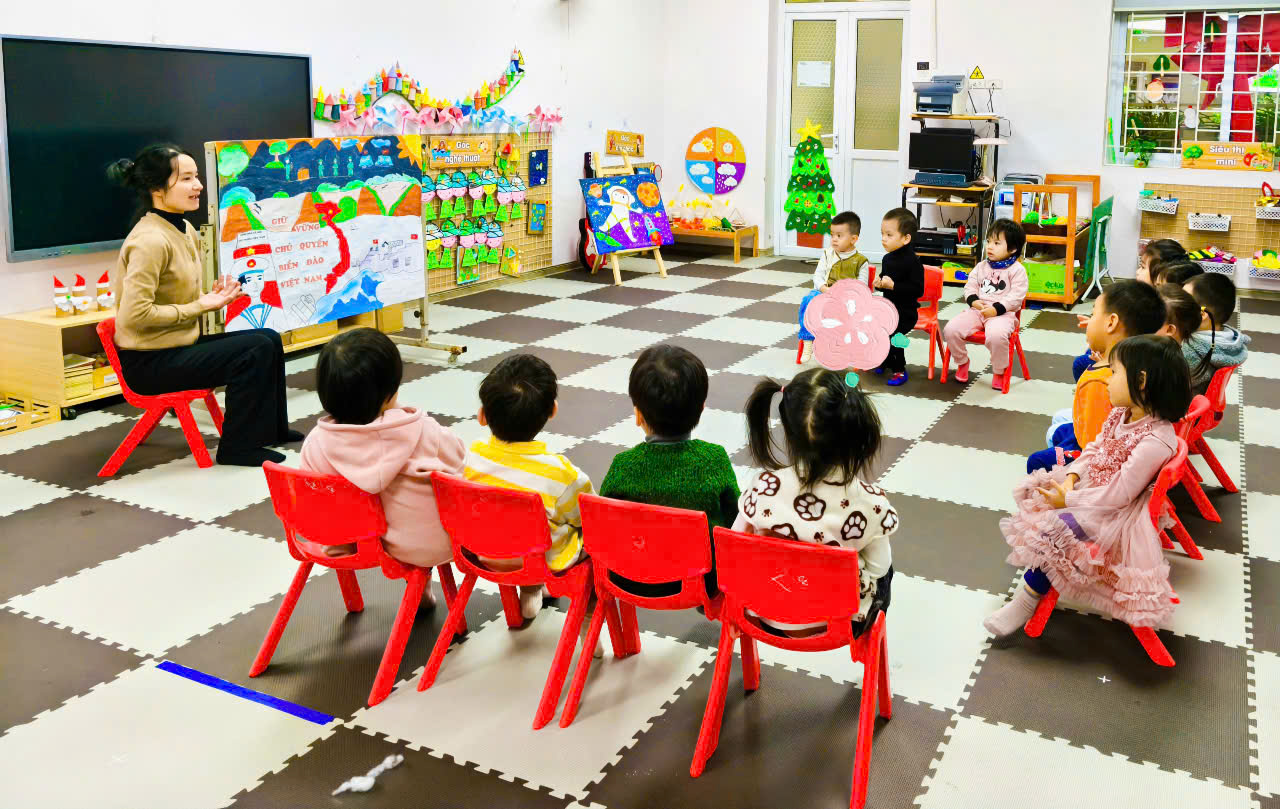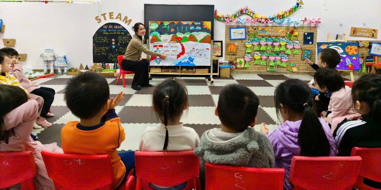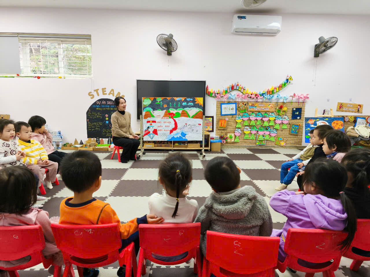 Các bé chăm chú và hào hứng cùng cô trò chuyện trong giờ học