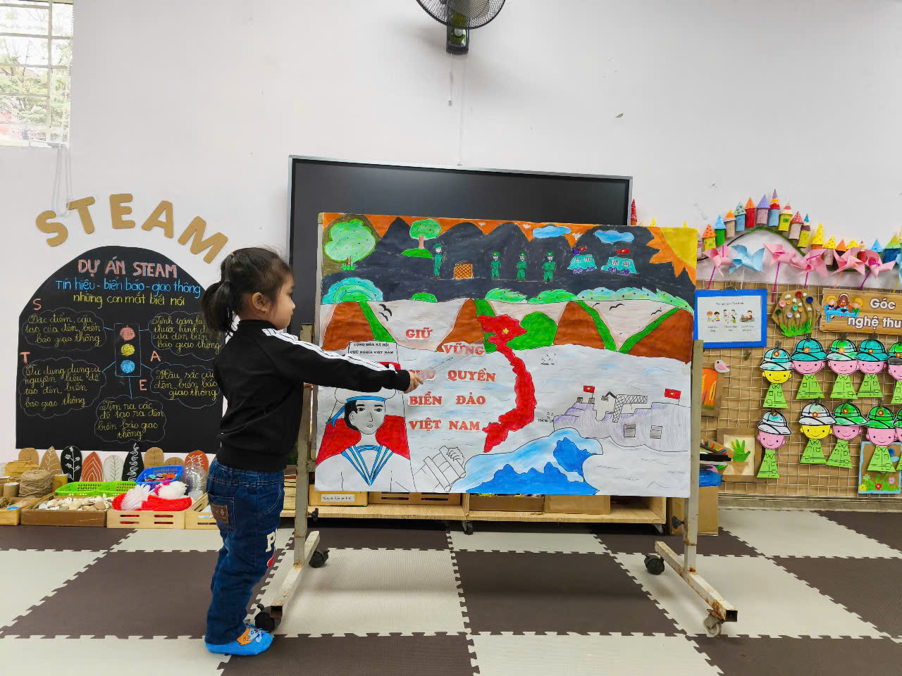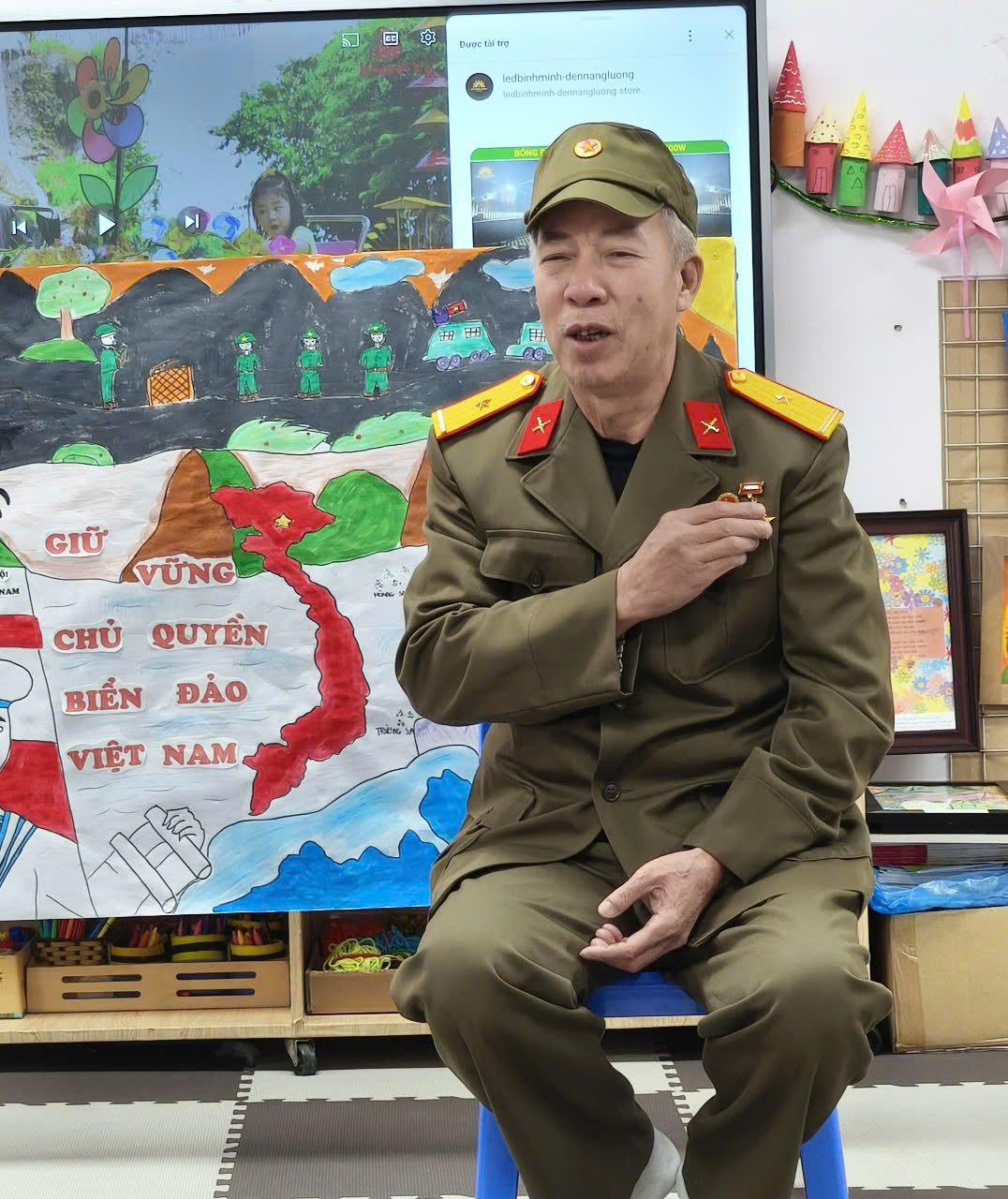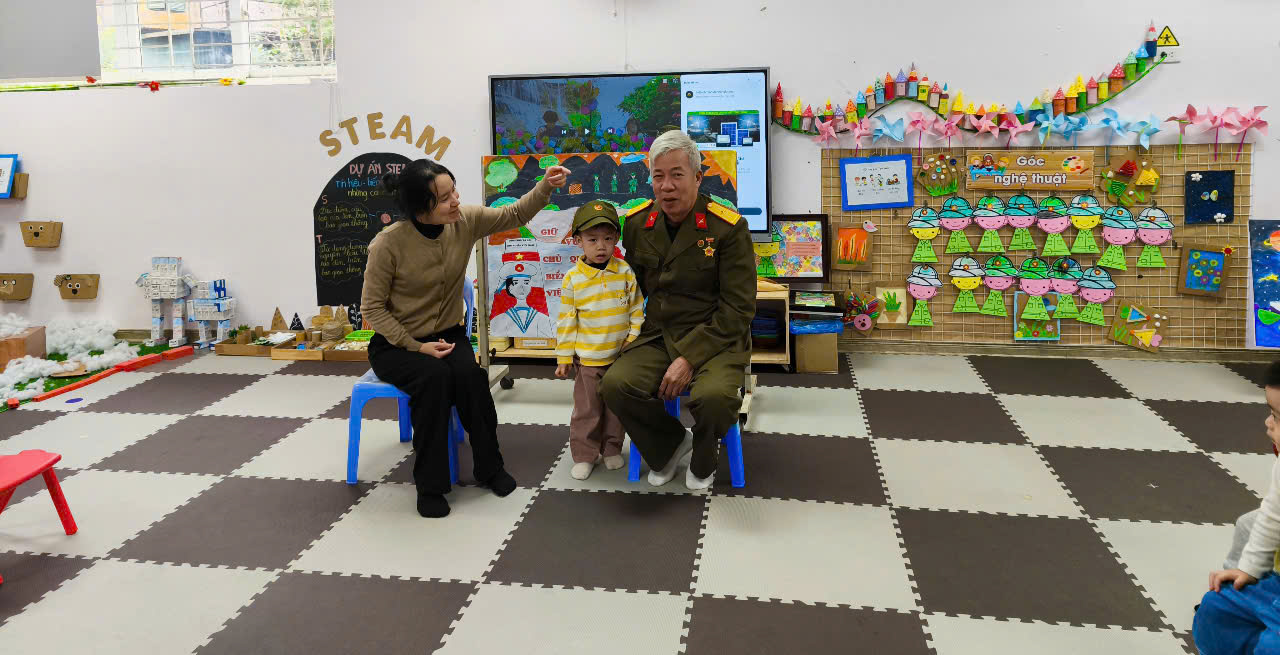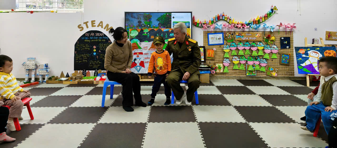 Giờ học khám phá, trò chuyện về cô chú bộ đội lớp C2 diễn ra sất sôi nổi.