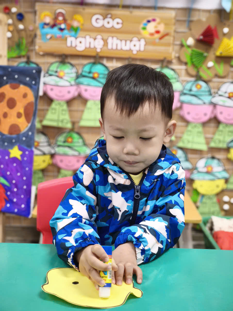 Sản phẩm của bé đã hoàn thành với sự giúp đỡ của cô giáo, bé rất hào hứng mong đợi để được tặng ông nội của mình nhân ngày 22/12.