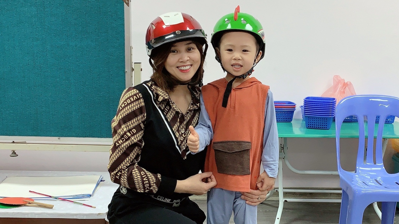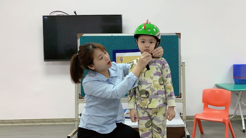 + Trẻ nhận biết được một số hành vi đúng – sai khi tham gia giao thông như: Phải đội mũ bảo hiểm đúng quy cách khi đi hoặc ngồi trên xe máy, xe đạp điện. Ngồi cho 2 chân sang hai bên, 2 tay ôm người lái xe, không được đùa nghịch hay quay sang hai bên khi ngồi trên xe…..