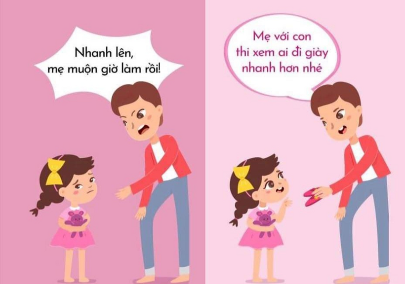 Cử chỉ nhẹ nhàng không áp đặt, con sẽ vui vẻ nghe lời.