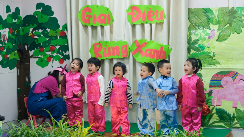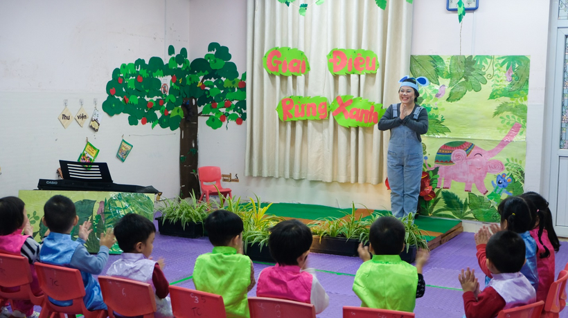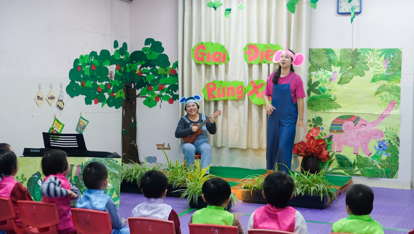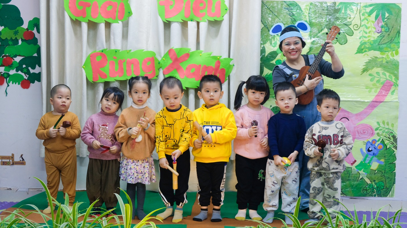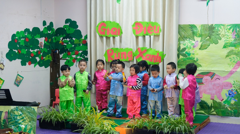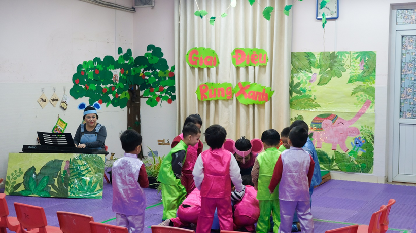 Một số hình ảnh của một hoạt động âm nhạc “Giai điệu rừng xanh” của lớp mẫu giáo bé C3 – C4