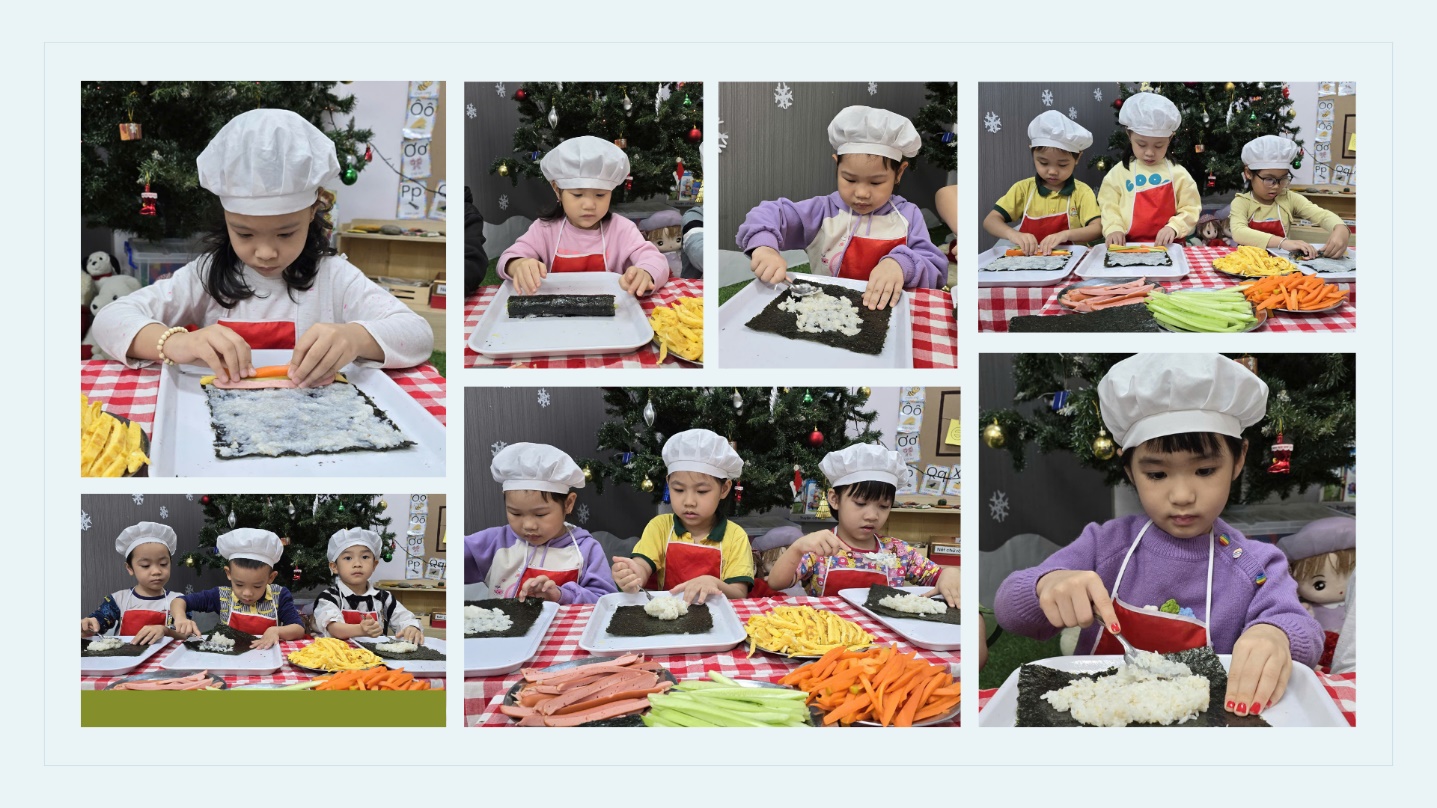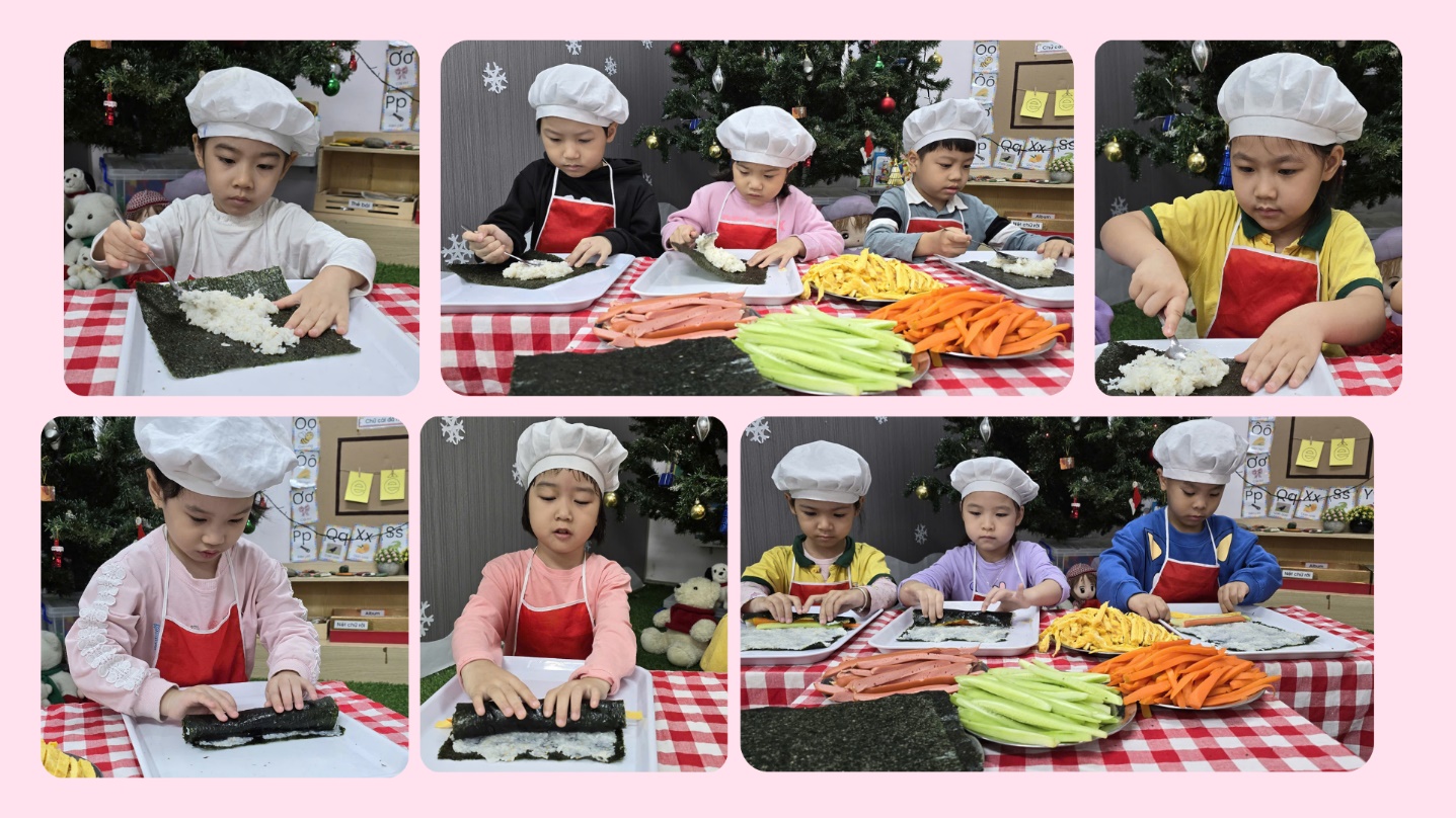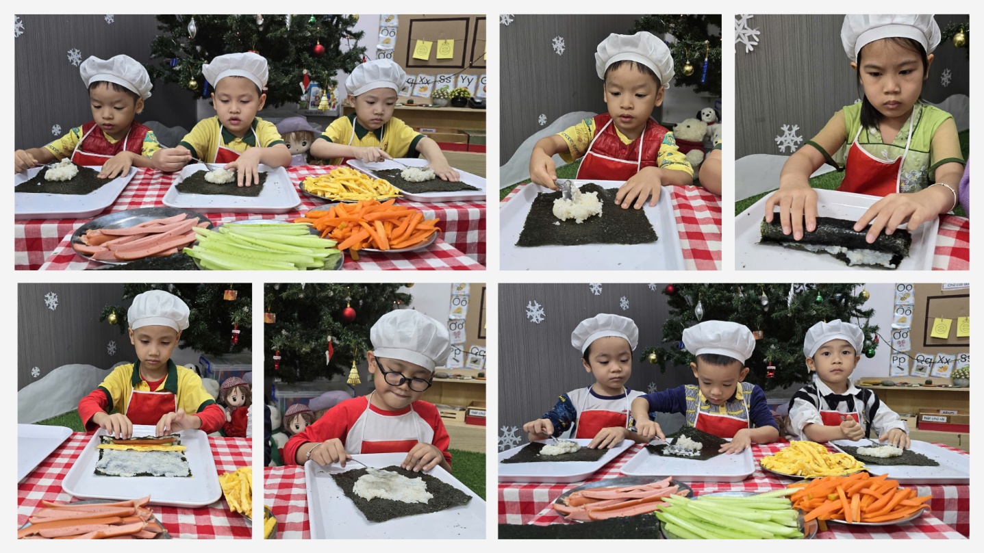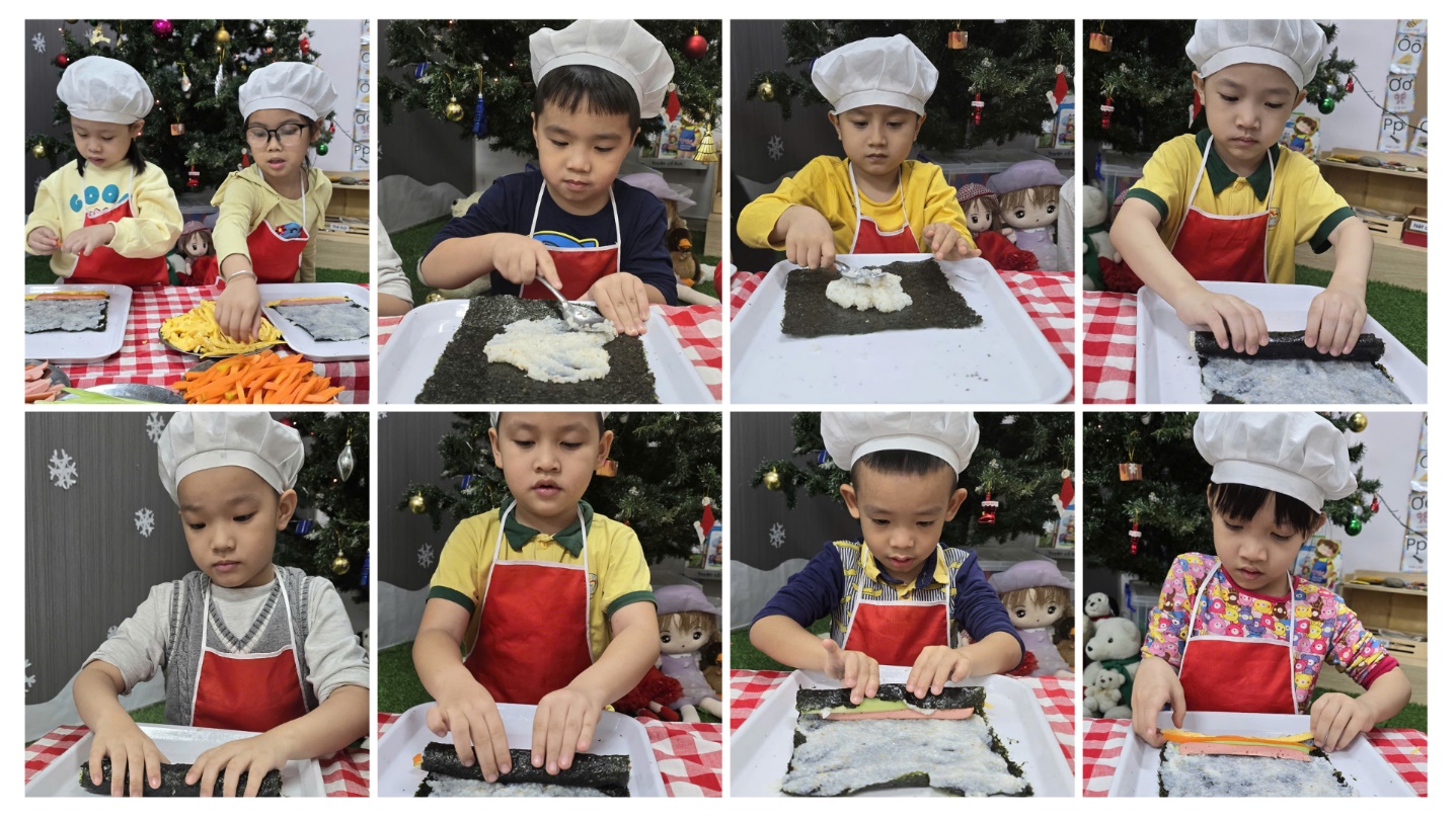 Với những nguyên liệu sạch sẽ, an toàn như lá rong biển, cơm trắng, trứng rán, xúc xích và cà rốt không chỉ đảm bảo dinh dưỡng mà còn giúp bé hiểu được tầm quan trọng của thực phẩm lành mạnh. Dưới sự hướng dẫn tận tình của các cô giáo, các bé đã tự tay tạo nên những cuộn cơm xinh xắn, vừa ngon miệng vừa bổ dưỡng.