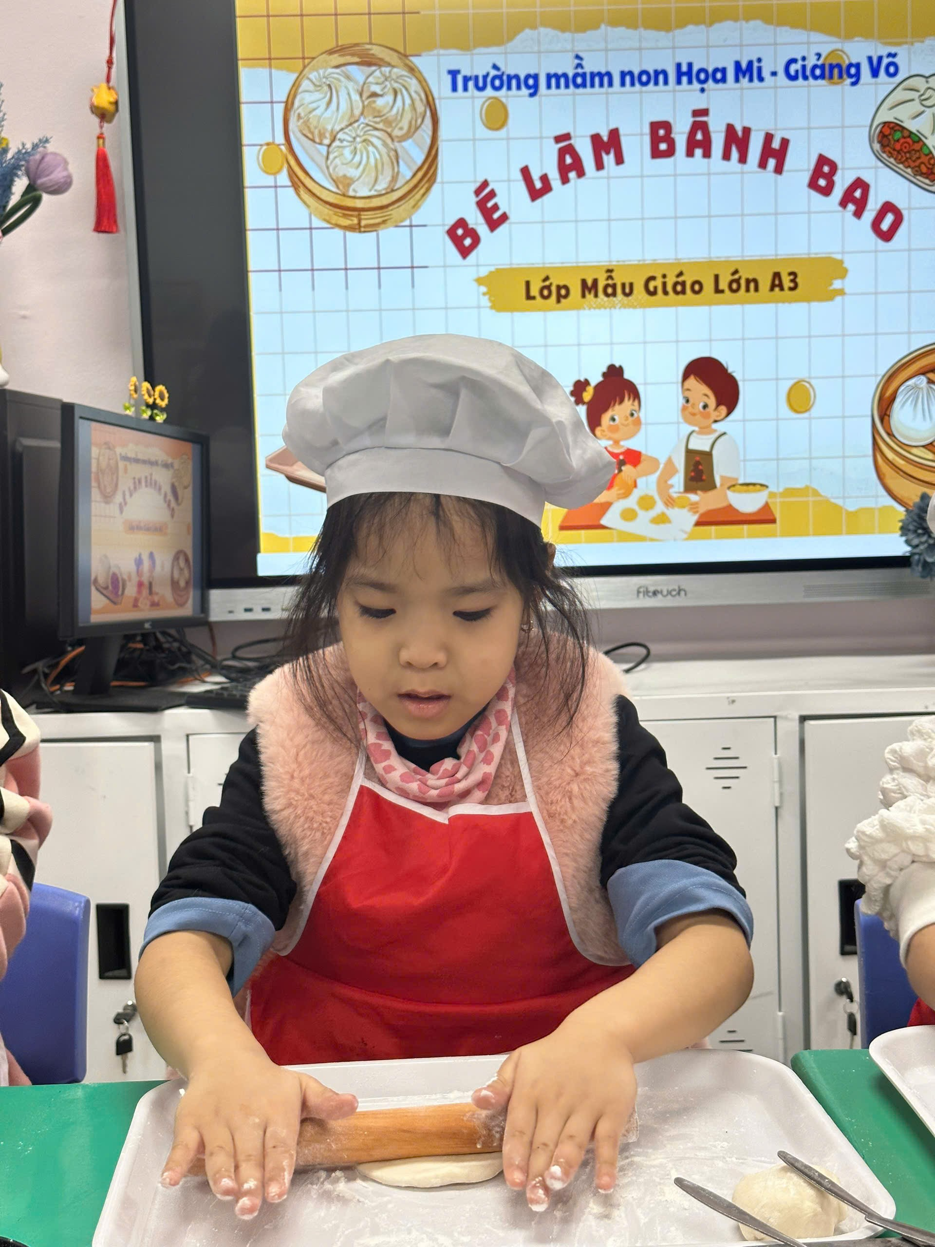Cô mỉm cười: Hôm nay, chúng mình tập làm Bánh Bao . 😍💕