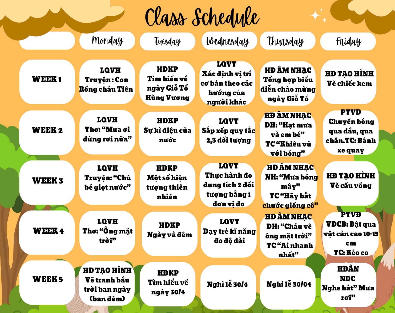 Kế hoạch tháng 4 Lớp mẫu giáo nhỡ B1
