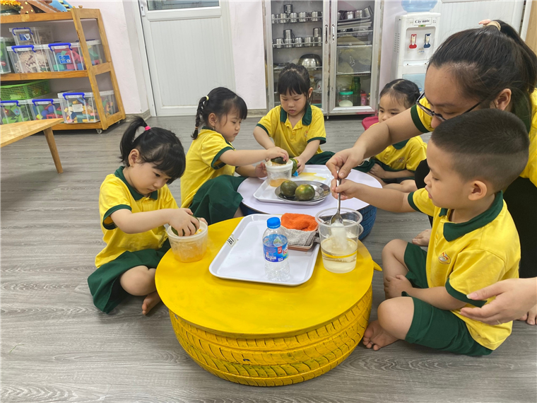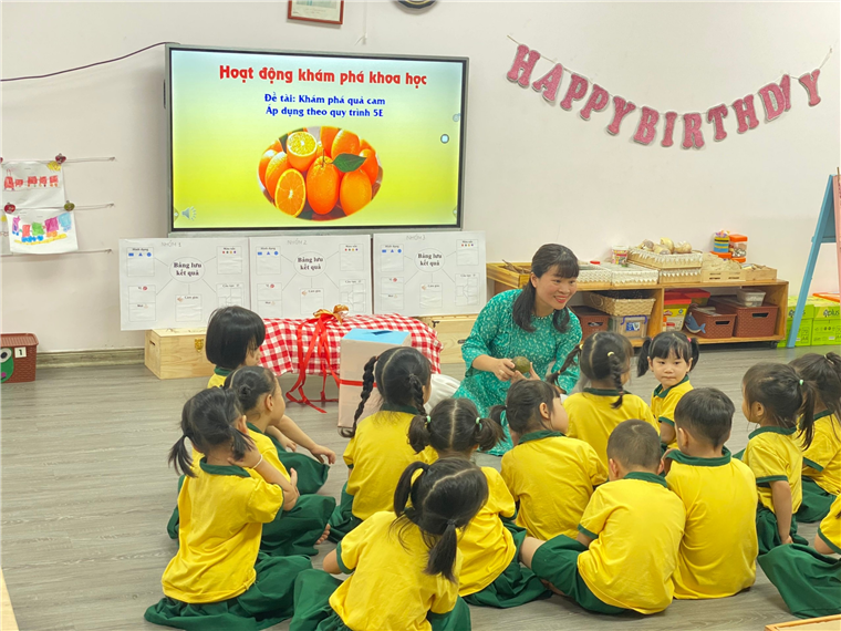 Hôm nay, không khí lớp A4 rộn ràng hơn bao giờ hết khi các bạn nhỏ cùng tham gia hoạt động trải nghiệm khám phá quả cam. Đây là một hoạt động vừa học vừa chơi, giúp các bé mở mang kiến thức và phát triển kỹ năng thông qua những điều gần gũi xung quanh.
