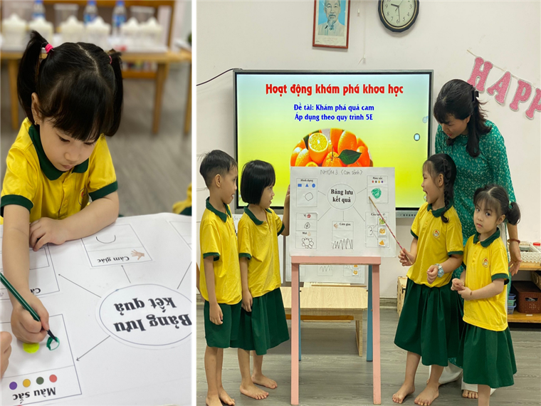 Trẻ ghi lại kết quả và trình bày kết quả của nhóm mình.