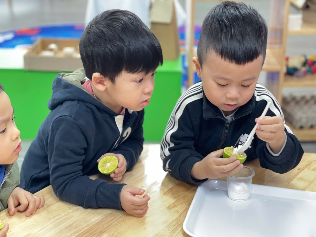 “Oa! Nó sủi bọt kìa!” – những tiếng reo vui vang lên khi các bé chứng kiến quả chanh nhỏ bé kết hợp với baking soda tạo thành những bọt bong bóng tí hon, sôi sục như một vụ nổ tí hon. Hóa học thật diệu kỳ, và chỉ cần một chút tò mò, thế giới quanh ta sẽ hiện ra đầy phép màu!