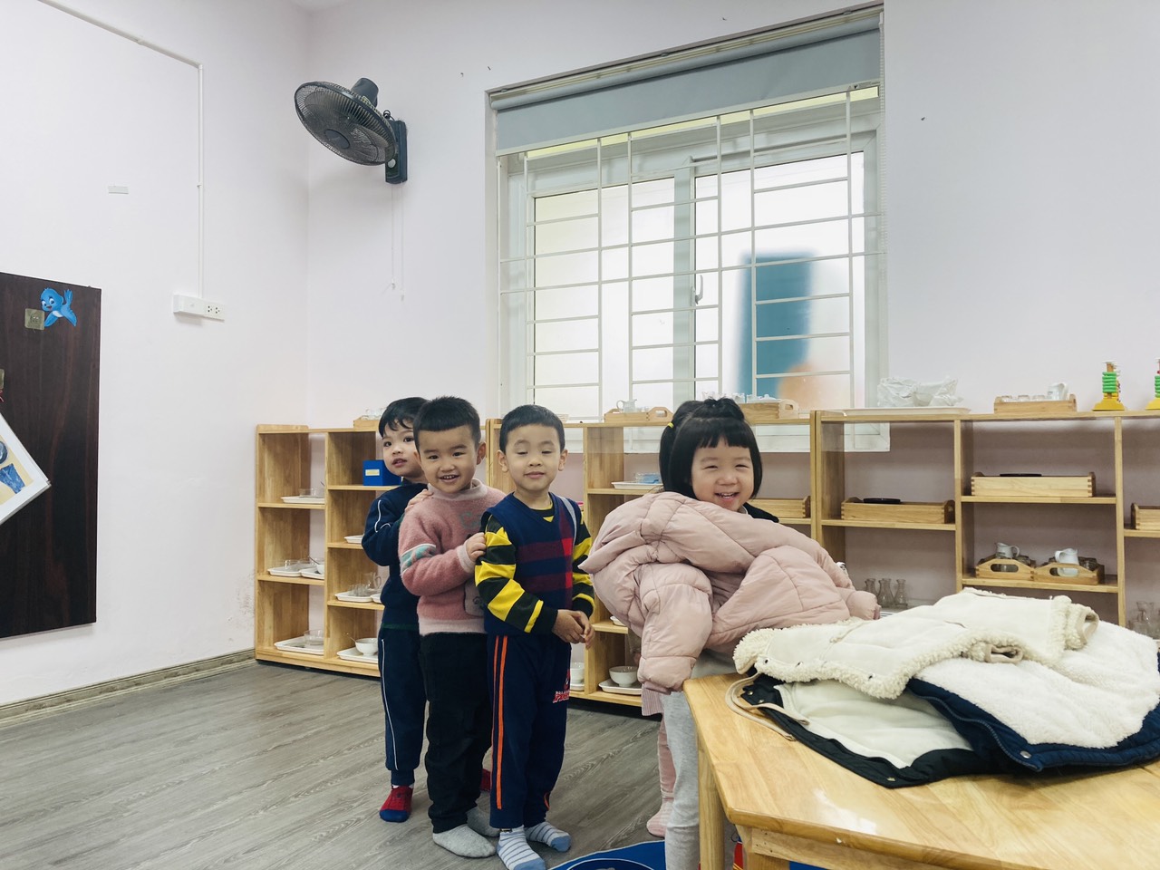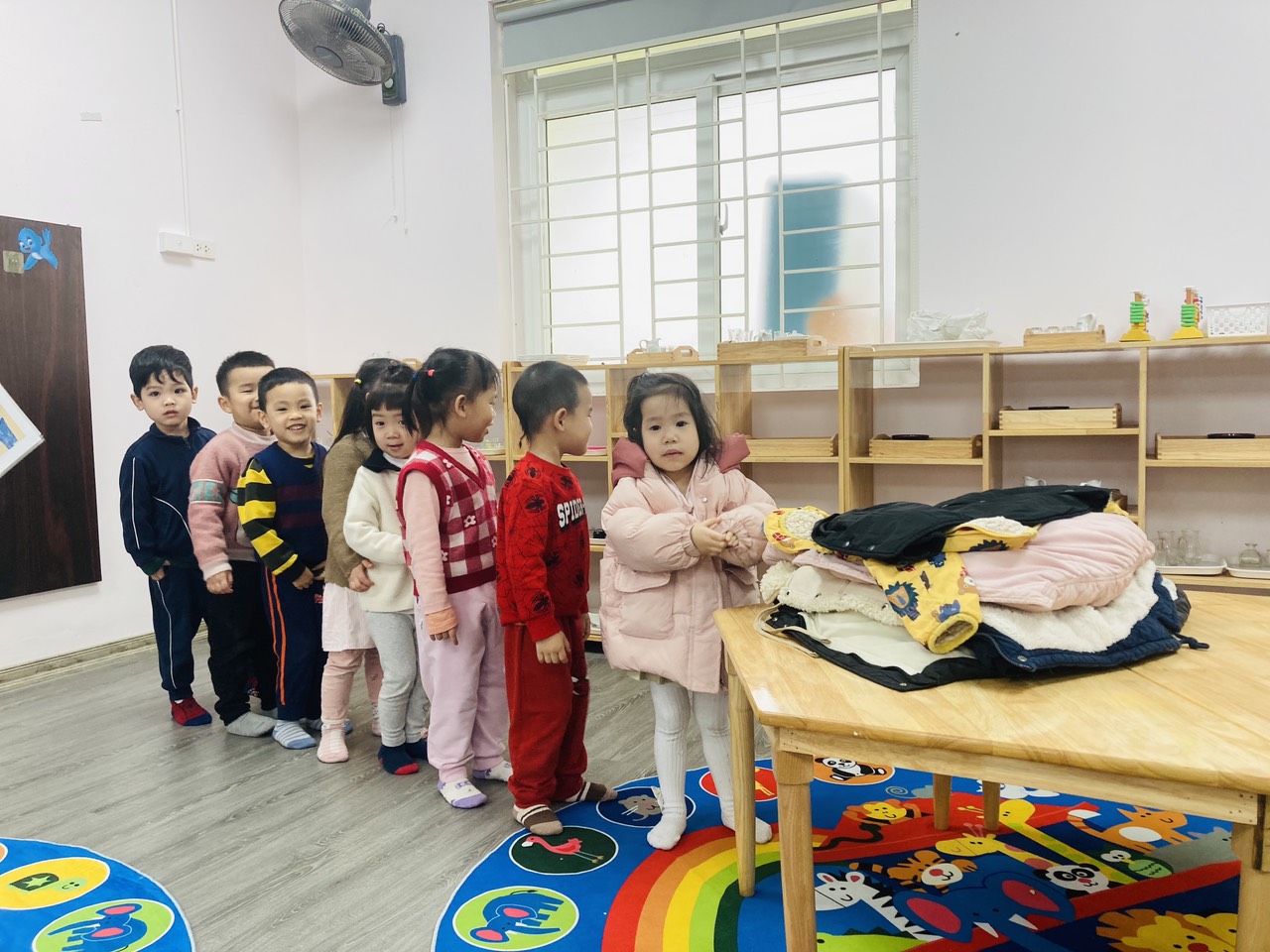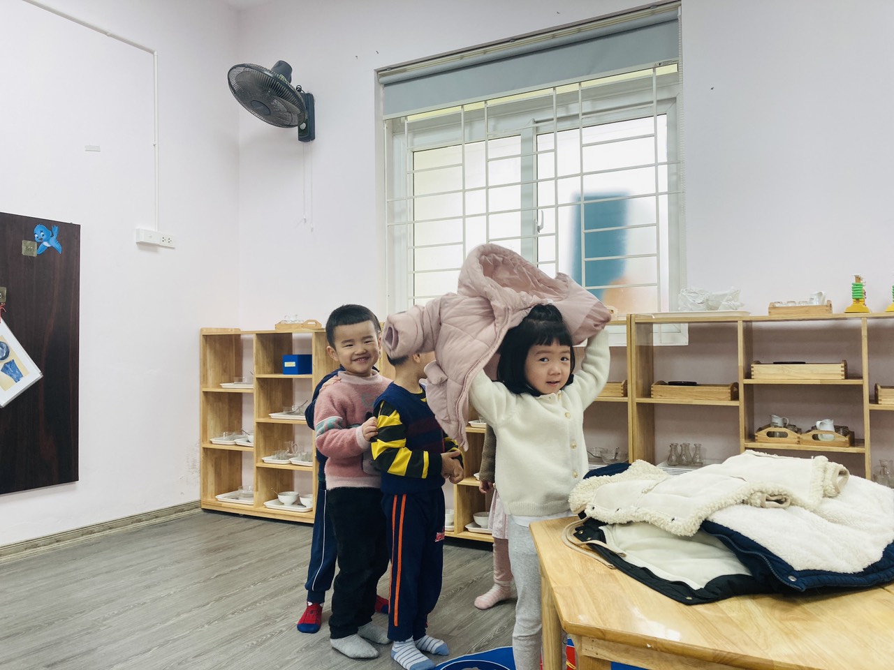 Trời trở lạnh, và đây là lúc các bé học cách tự mặc áo khoác – một kỹ năng đơn giản nhưng giúp con dần trở nên tự tin và độc lập hơn. Những đôi tay bé nhỏ thử cài khóa kéo, xỏ tay áo, kéo mũ lên đầu… Có bé ban đầu còn lúng túng, nhưng chỉ sau vài lần, con đã hào hứng khoe: “Con làm được rồi!” Một bài học nhỏ nhưng ý nghĩa lớn biết bao!