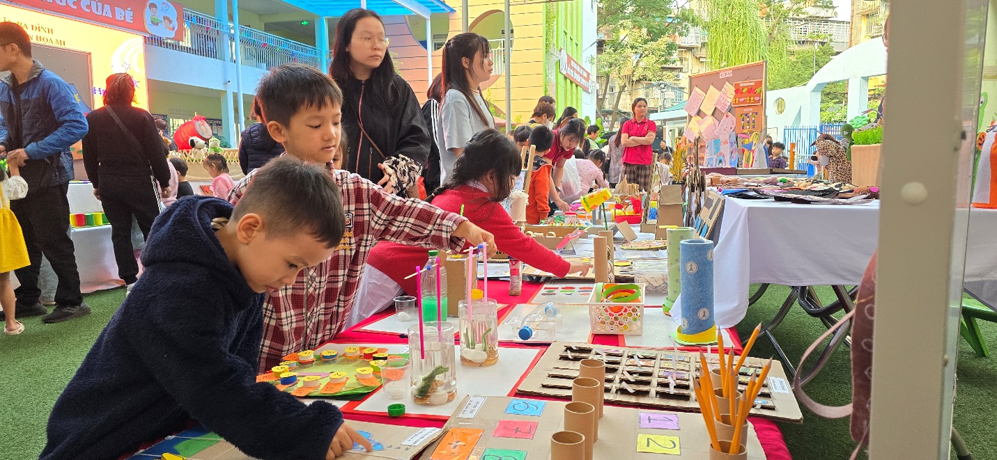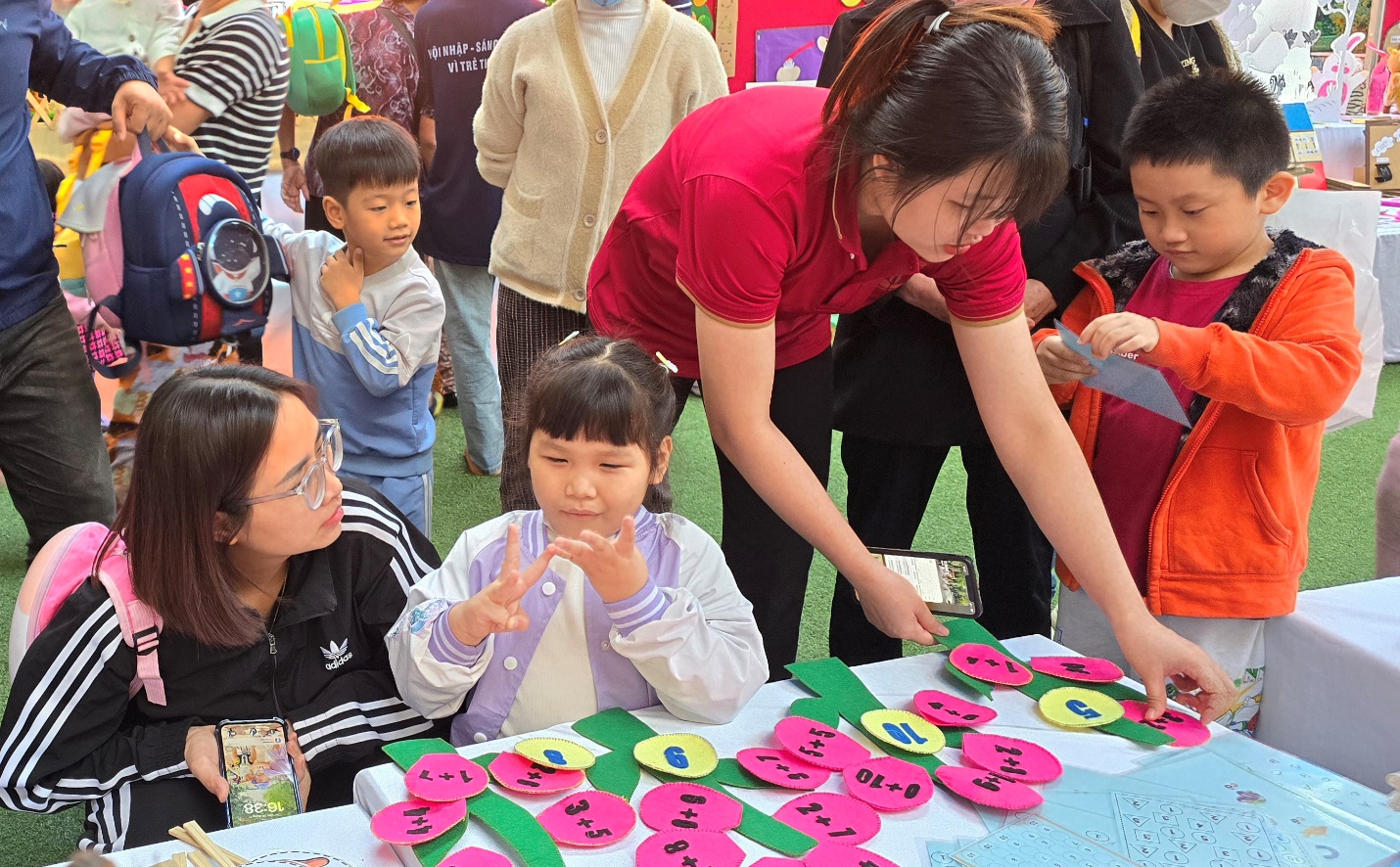 Học sinh và phụ huynh tham quan triển lãm đều rất thích thú. Các bé được trải nghiệm chơi với các bộ đồ chơi về Toán, chữ cái, Steam, qua đó vừa học vừa chơi một cách hiệu quả. Những tiếng cười và sự tò mò thích khám phá của các bé đã làm cho không khí của triển lãm thêm phần sôi động và ý nghĩa.