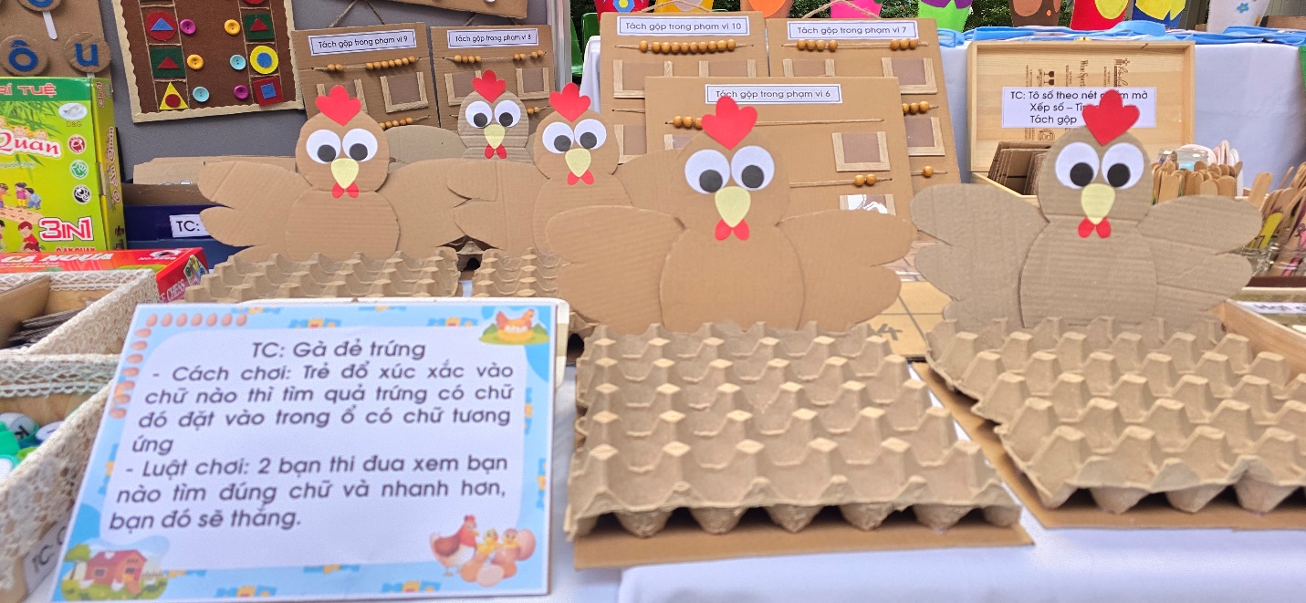 Bộ đồ chơi “Gà đẻ trứng” của lớp A4 cũng được Ban Giám Hiệu đánh giá cao về tính hiệu quả