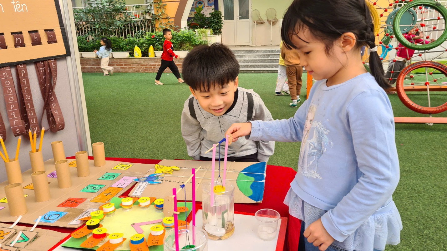 - Lớp A1: Trình làng bộ đồ chơi Steam sáng tạo, kích thích trẻ khảo sát thí nghiệm khoa học