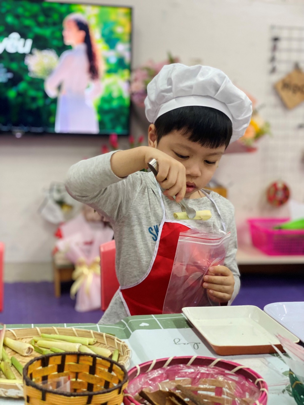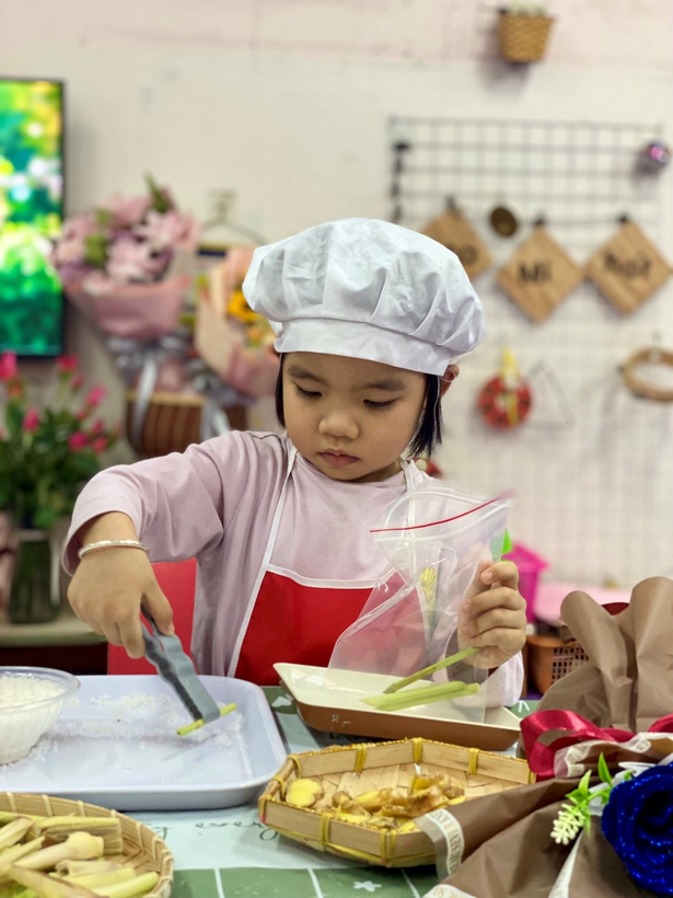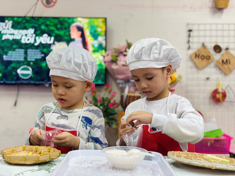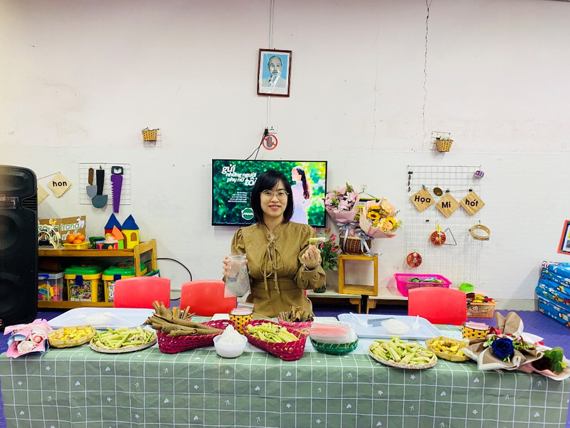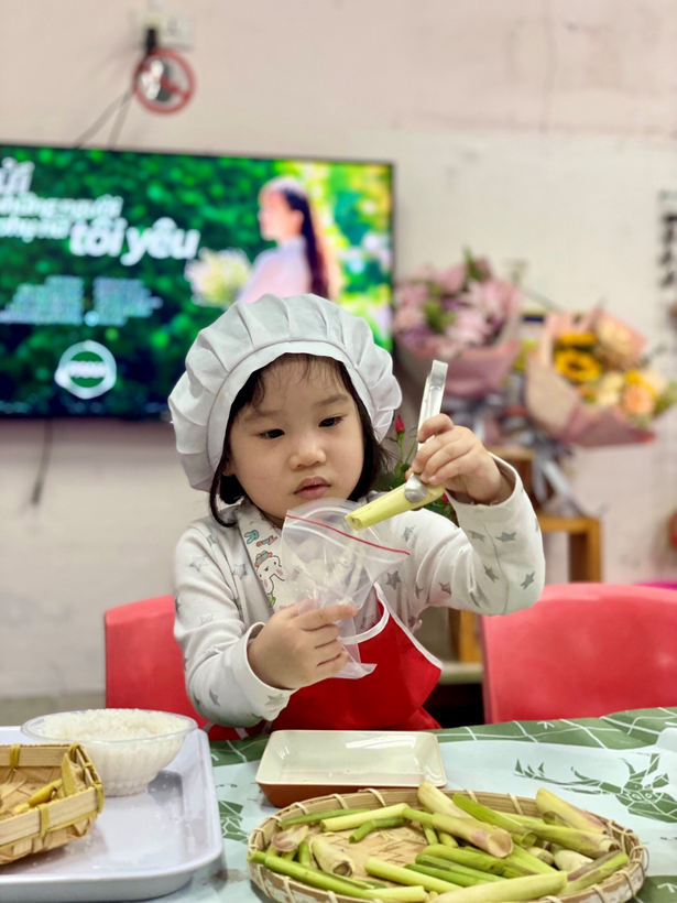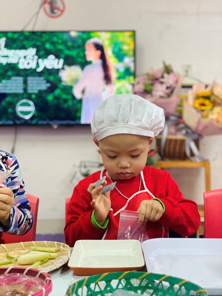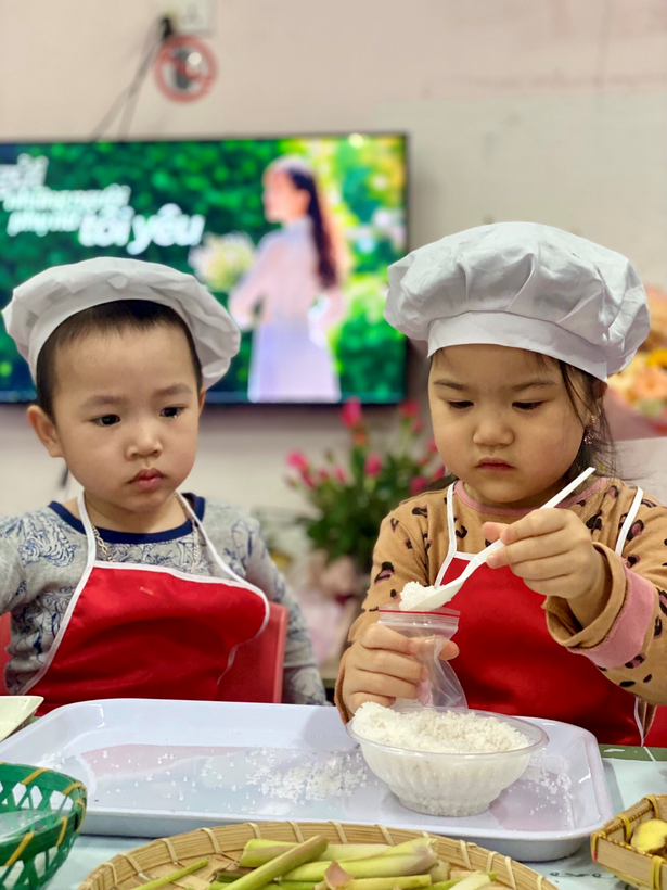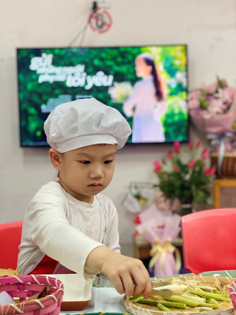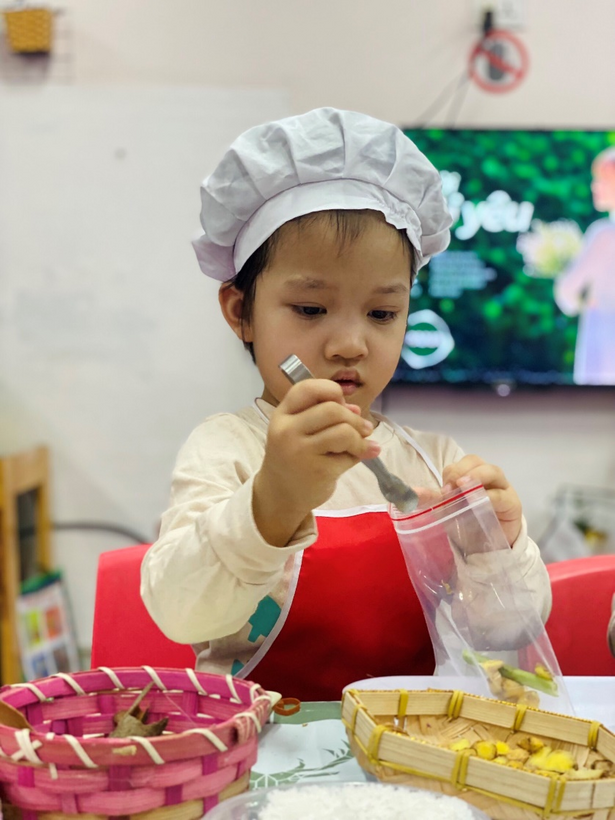 Với ý nghĩa muốn cho phái đẹp – nửa yêu thương của thế giới được yêu chiều nhiều hơn, cô và trò khối Mẫu giáo bé đã bắt tay làm nguyên liệu để pha nước ngâm chân để các bé mang tặng bà – mẹ của mình.