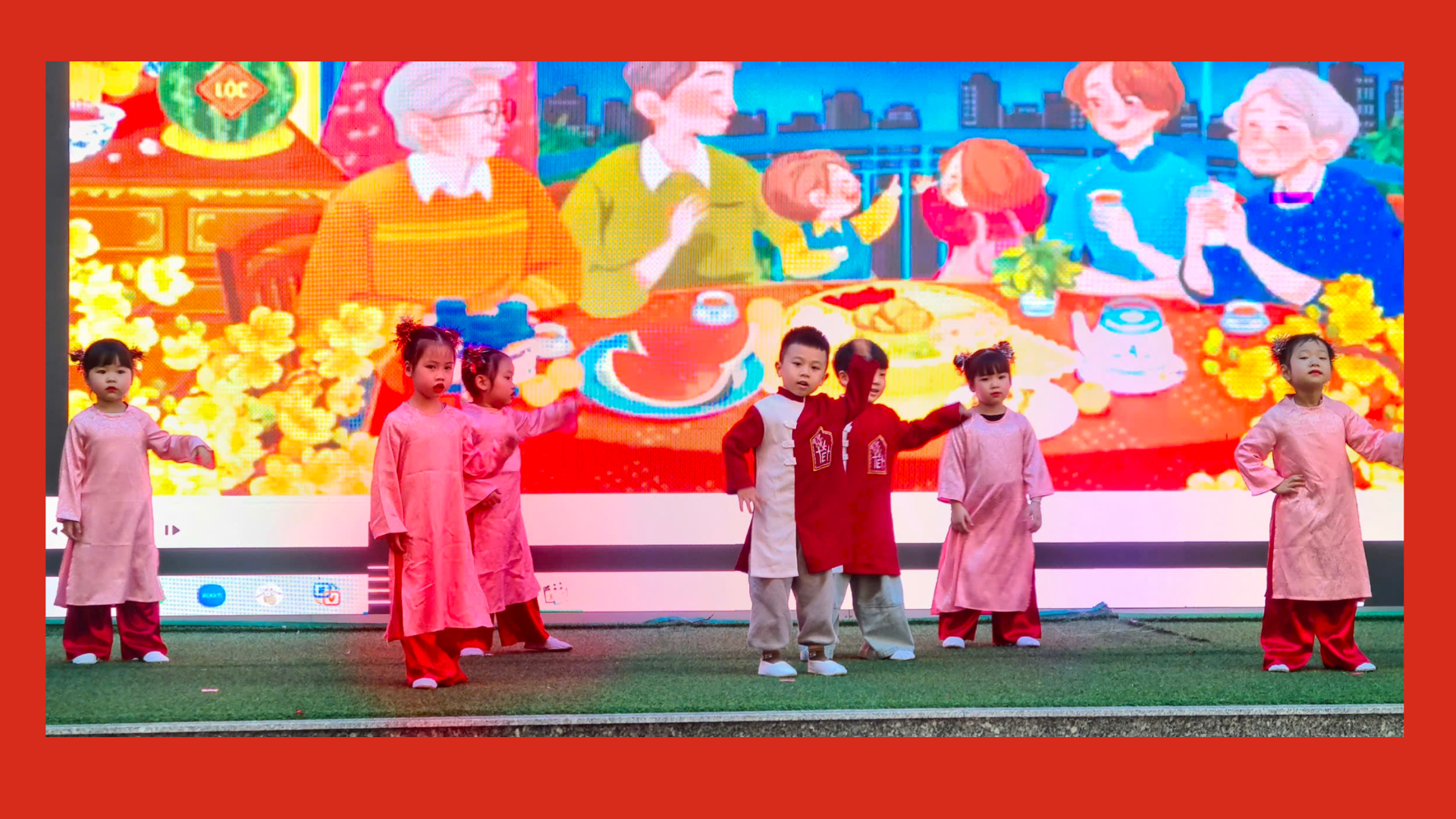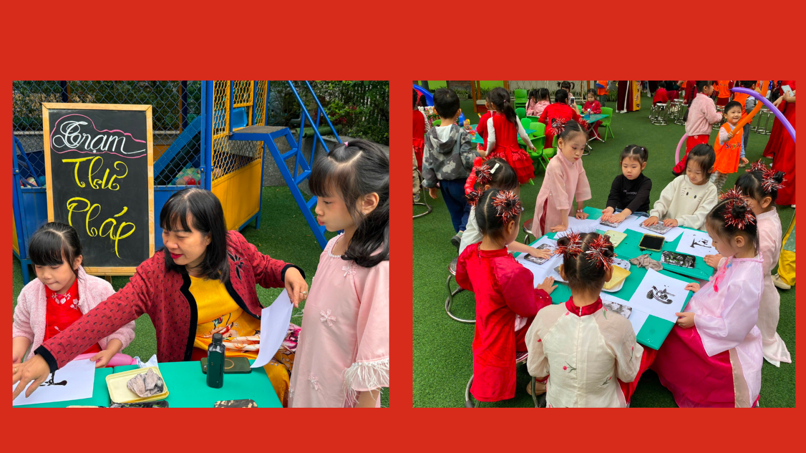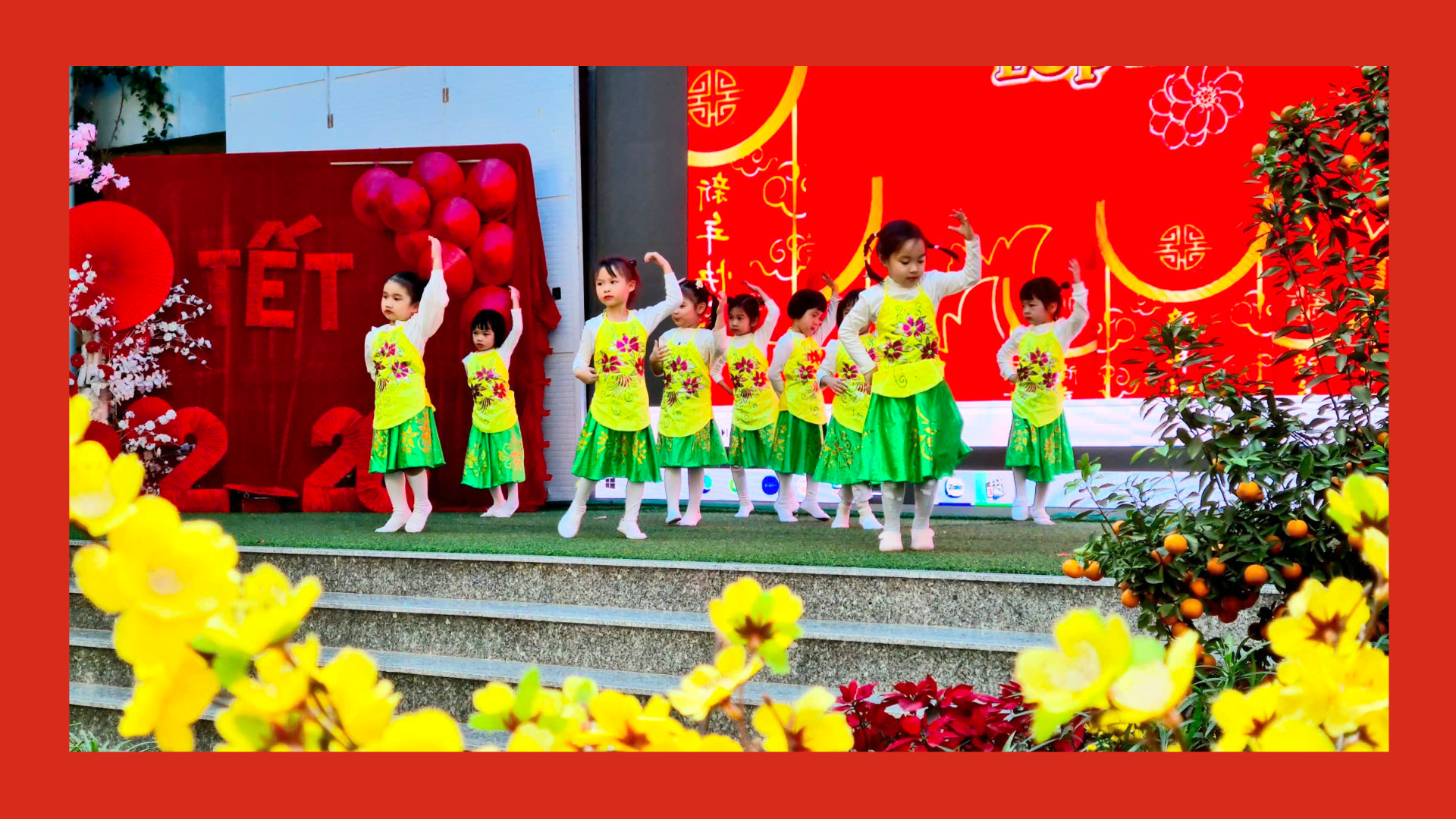 Ngay từ sáng sớm, sân trường đã rộn ràng sắc màu với những tà áo dài xinh xắn, những nụ cười hồn nhiên của các bé. Mở đầu chương trình là những tiết mục văn nghệ đặc sắc do chính các bé ở khối mẫu gióa lơn và khối mẫu giáo Nhỡ biểu diễn. Các điệu múa, bài hát về mùa xuân được các con thể hiện vô cùng tự tin, đáng yêu, mang đến không khí tươi vui, rộn ràng chào đón lễ hội xuân mừng năm mới.