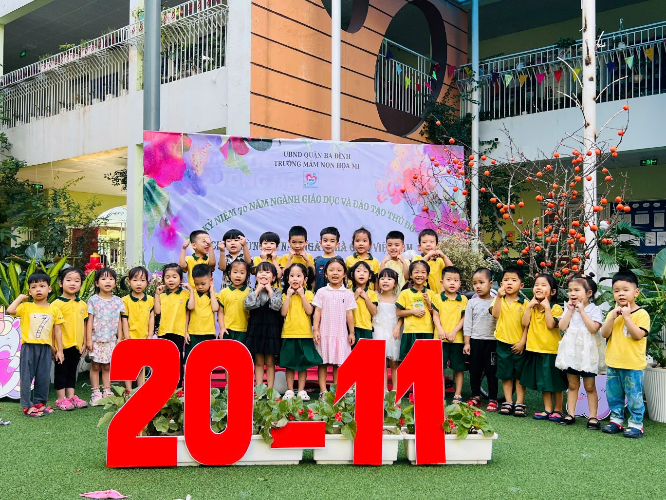 Cùng với không khí kỉ niệm 70 năm thành lập ngành giáo dục và đào tạo Thủ Đô và 42 năm ngày Nhà Giáo Việt Nam,  hôm nay, các bé lớp mẫu giáo nhỡ B2,  trường mầm non Hoạ Mi đã tổ chức buổi liên hoan đặc biệt để kỷ niệm Ngày Nhà giáo Việt Nam 20/11 – ngày tôn vinh những người thầy, người cô đã và đang ngày đêm cống hiến cho sự nghiệp giáo dục.