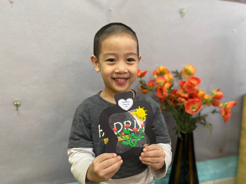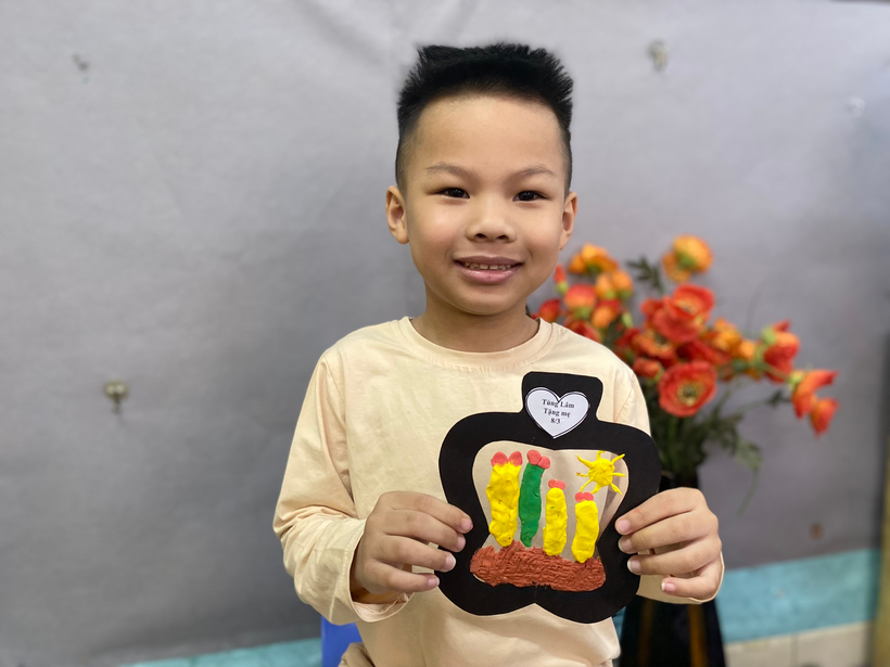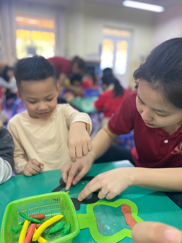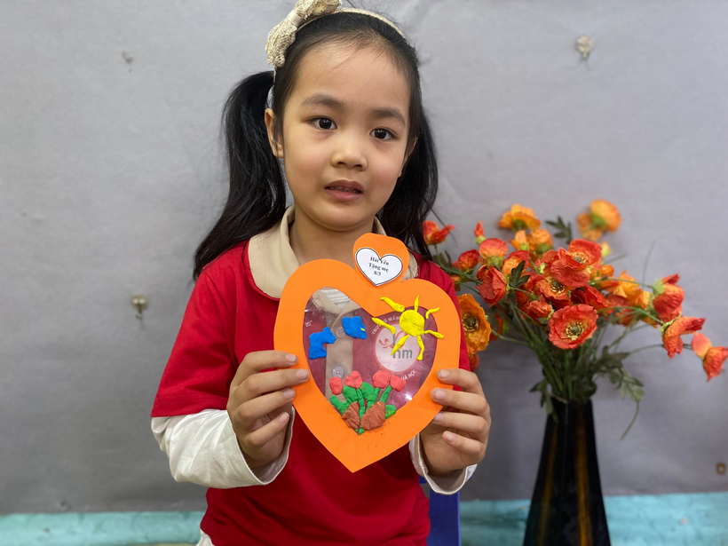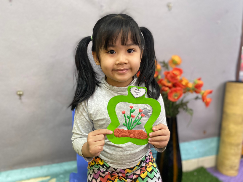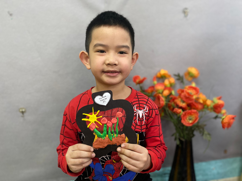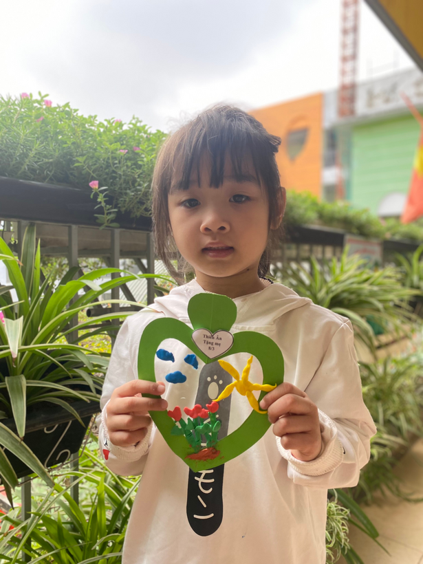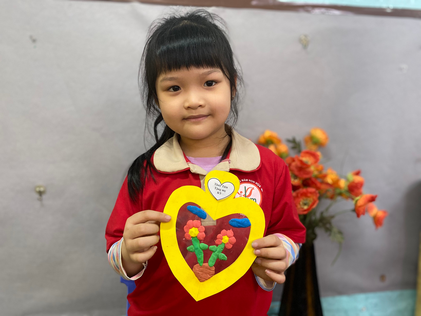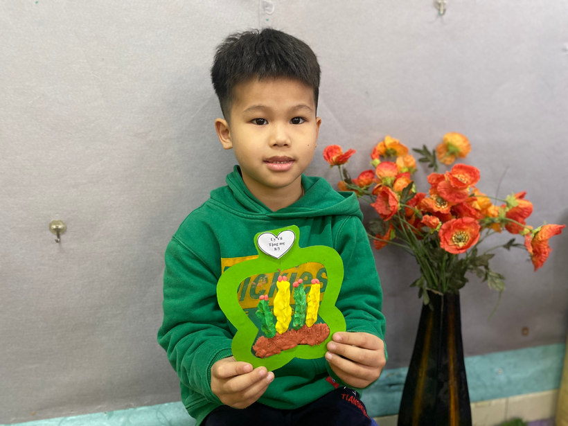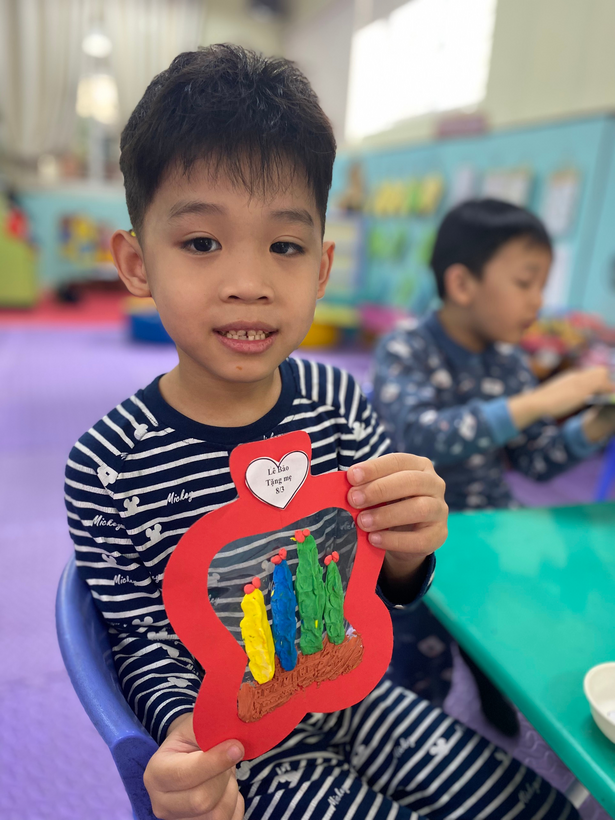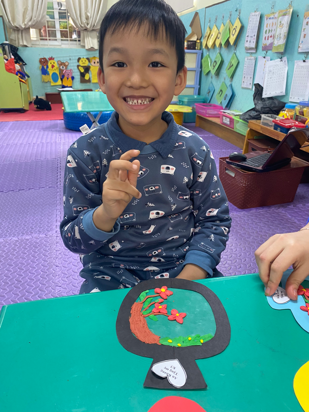 Với sự sáng tạo riêng, cô hướng dẫn bé làm món quà tặng mẹ bằng đất nặn thật độc đáo kèm theo đó là những lời chúc yêu thương gởi đến mẹ : “ Chúc mẹ luôn mạnh khỏe “, “ Chúc mẹ vui vẻ, con yêu mẹ”,...