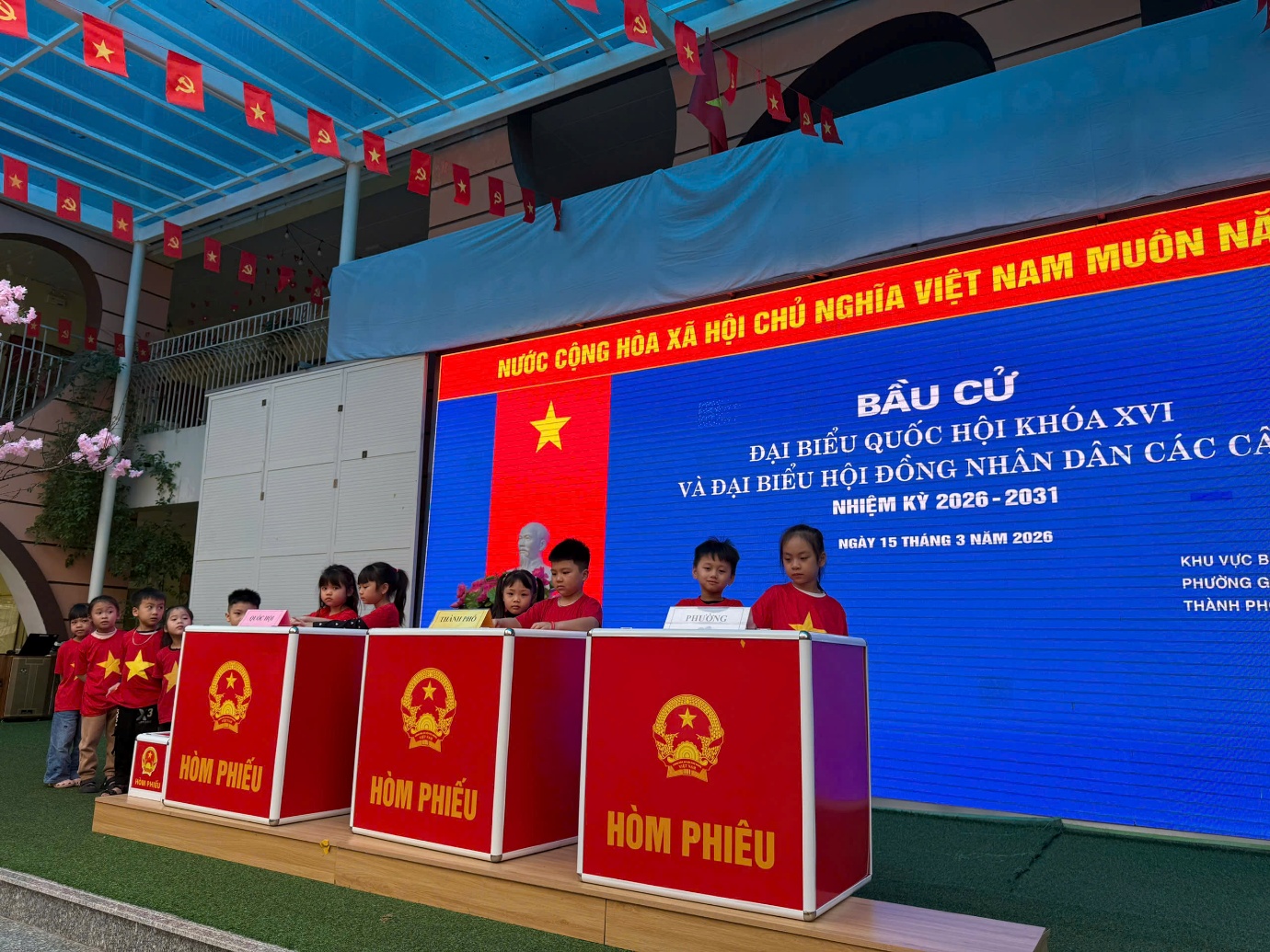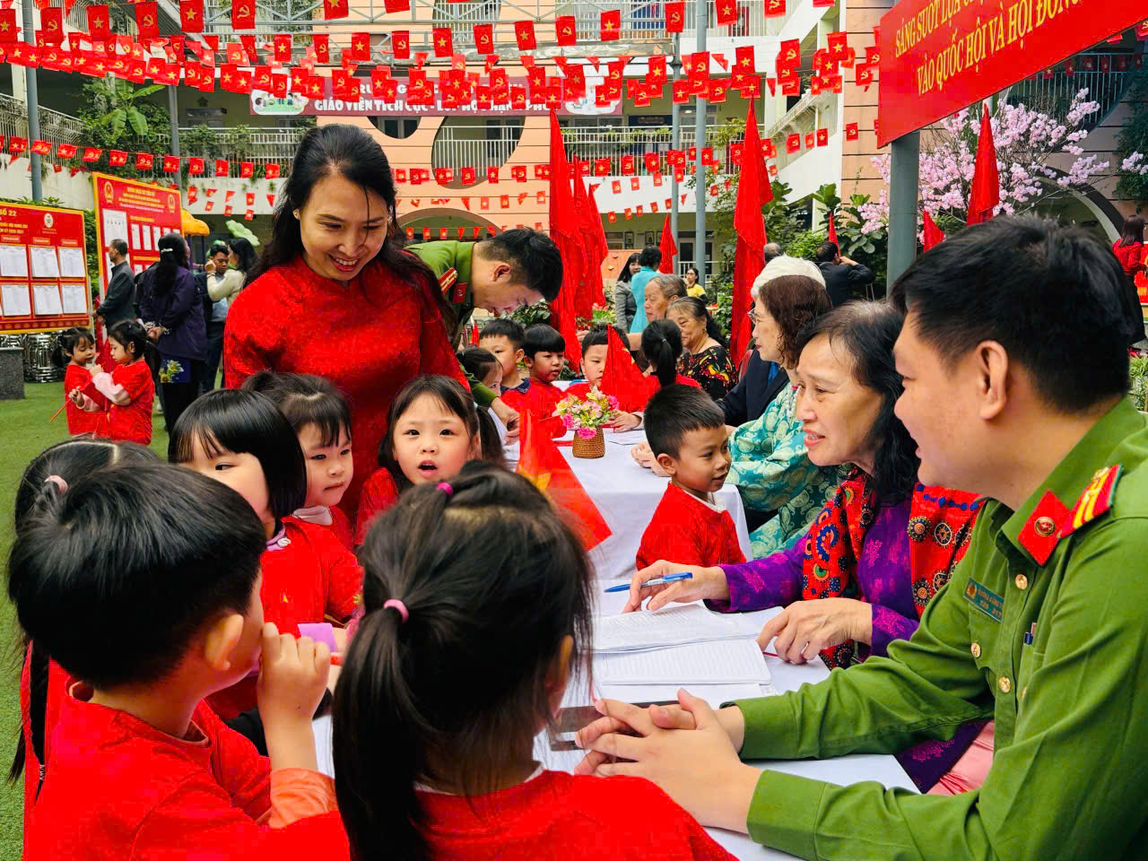 Hưởng ứng Ngày bầu cử 15/3/2026, cô và trò lớp A1 – Trường Mầm non Họa Mi đã tổ chức hoạt động trải nghiệm “Bé tập làm cử tri”. Đặc biệt, các em nhỏ còn được gặp gỡ, giao lưu với các bác trong tổ bầu cử, mang đến cho các bé một trải nghiệm ý nghĩa và đáng nhớ.