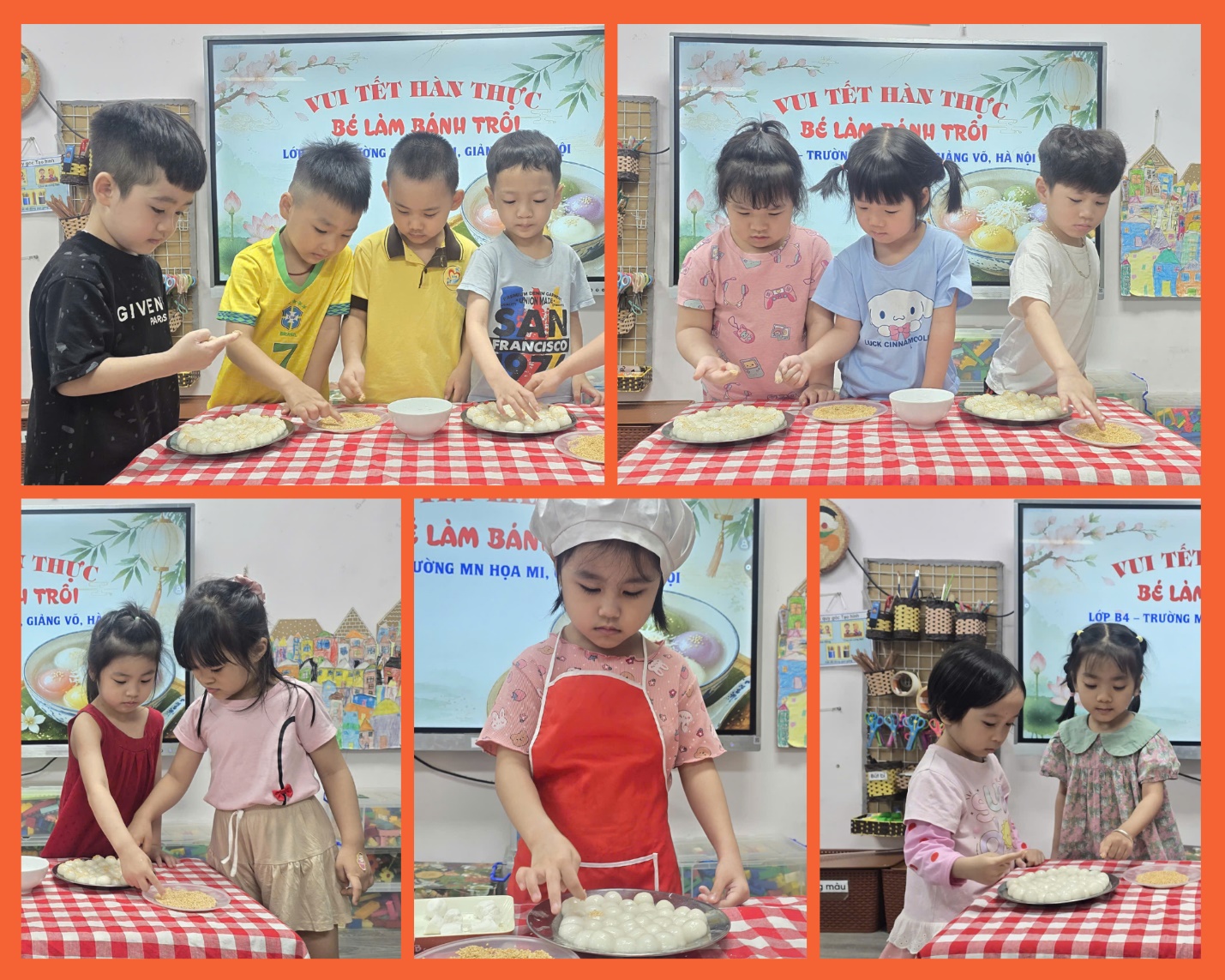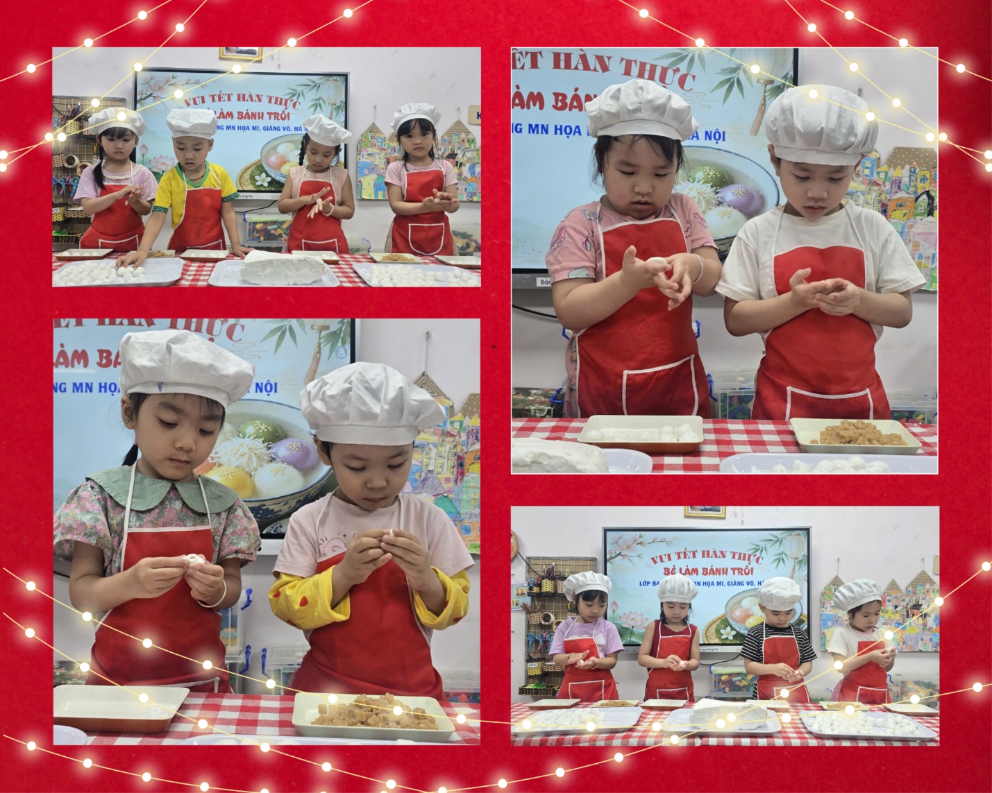 Thông qua hoạt động này, trẻ không chỉ được rèn luyện kỹ năng vận động tinh, sự khéo léo mà còn hiểu thêm về ý nghĩa của Tết Hàn Thực – một dịp để tưởng nhớ cội nguồn, gìn giữ nét đẹp văn hóa dân tộc Việt Nam.