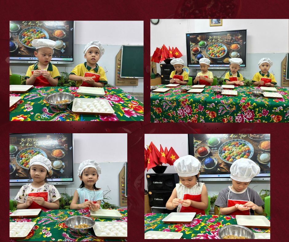Hoạt động không chỉ giúp các con hiểu thêm về nét đẹp văn hóa truyền thống trong dịp Tết Hàn Thực, mà còn rèn luyện sự khéo léo, kiên nhẫn và nuôi dưỡng tình yêu với những giá trị dân gian từ những điều gần gũi nhất.