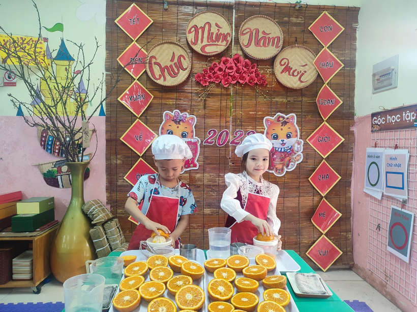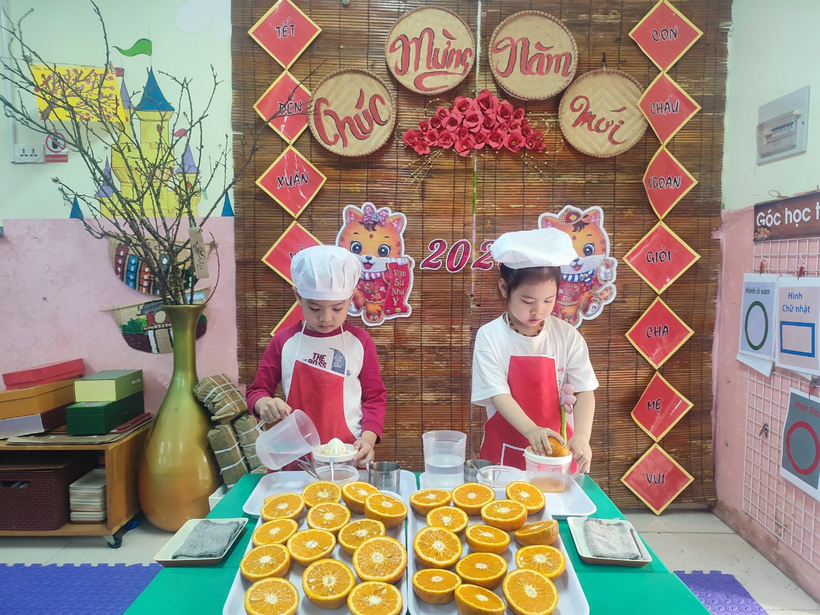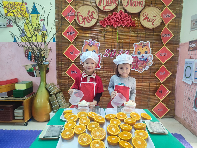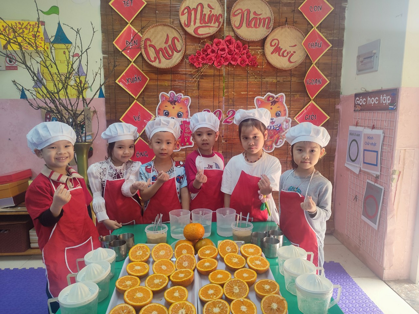 Các con thả tim trước khi trải nghiệm kỹ năng vắt nước cam .