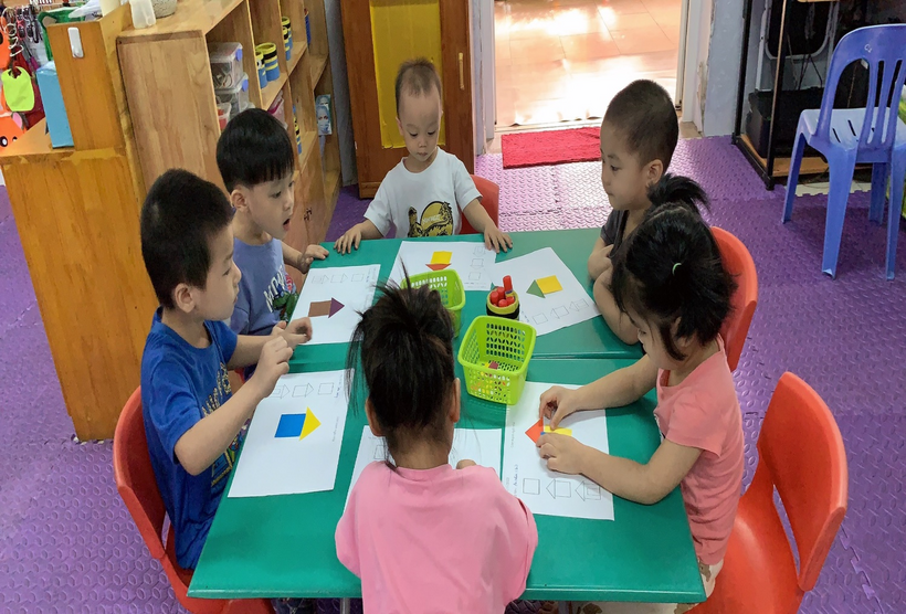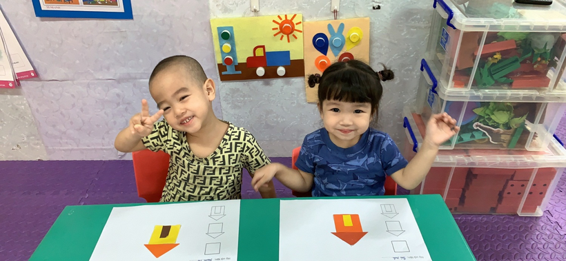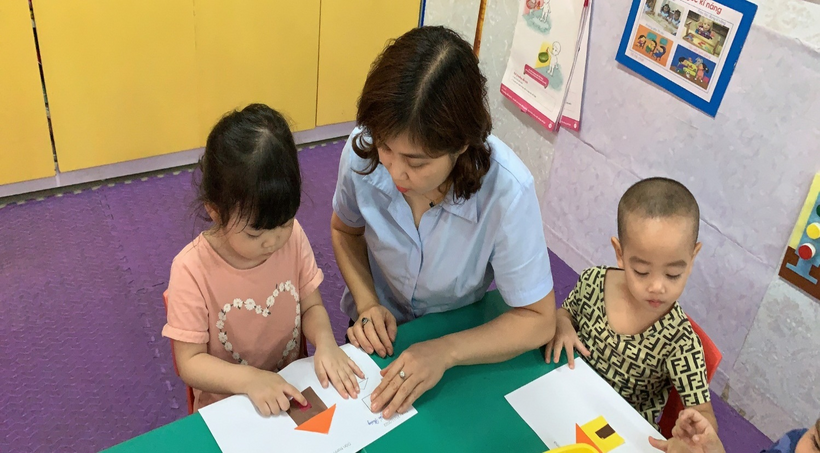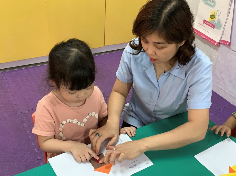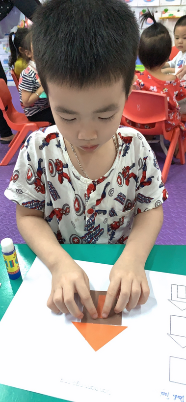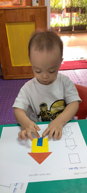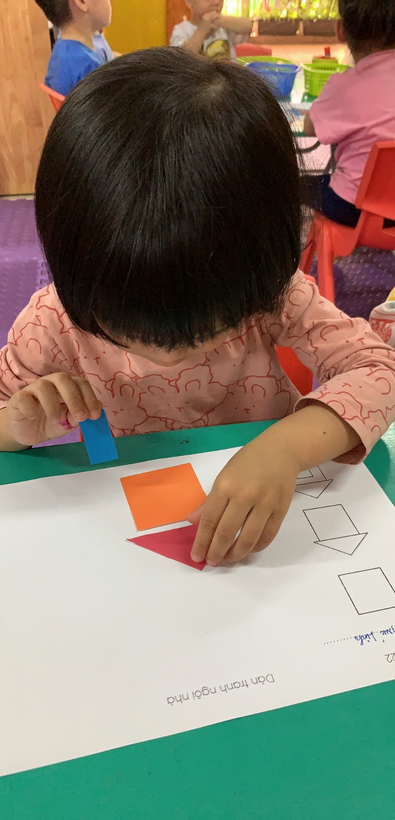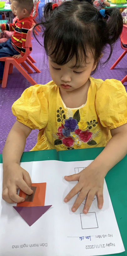 Hình ảnh cô hướng dẫn trẻ khi trẻ sắp xếp các hình