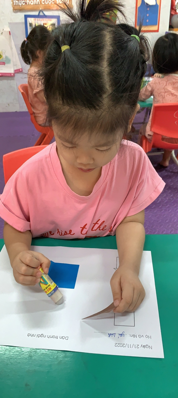 Các con chấm hồ để dán ngôi nhà đấy.