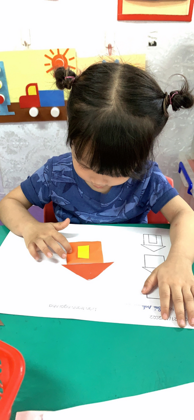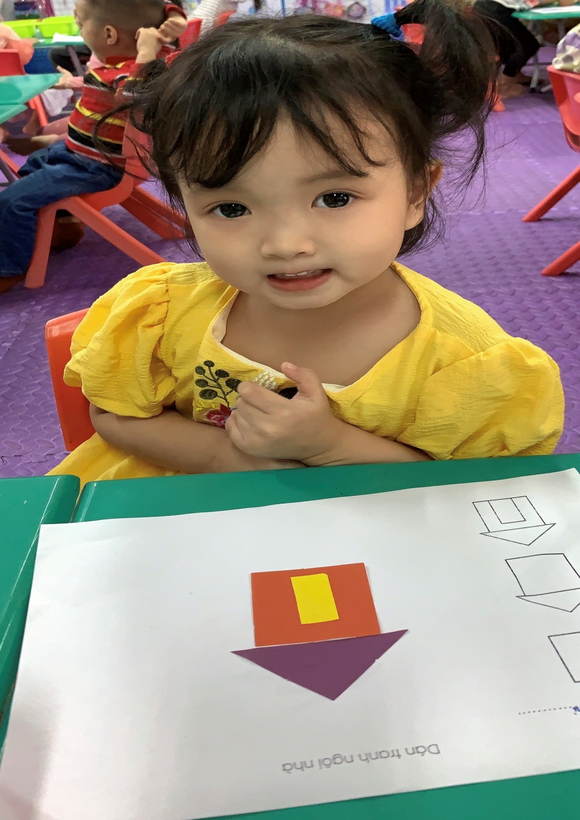 Hiểu được vai trò và ý nghĩa của hoạt động tạo hình với trẻ, các cô giáo lớp mẫu giáo bé C2 luôn tìm tòi, tổ chức nhiều nội dung cho trẻ trong các hoạt động tạo hình. Trẻ rất thích thú và hăng hái tham gia và có nhiều sản phẩm đẹp, sáng tạo. Sau đây là một số hình ảnh của trẻ lớp mẫu giáo bé C2 trong giờ hoạt động tạo hình “Dán tranh ngôi nhà”( Tiết mẫu) Qua giờ hoạt động trẻ có thêm kỹ năng xếp hình,chấm hồ và dán để dán tranh ngôi nhà.Trẻ đã biết dùng các hình vuông,hình chữ nhật,tam giác dán thành hình ngôi nhà có mái,có cửa: