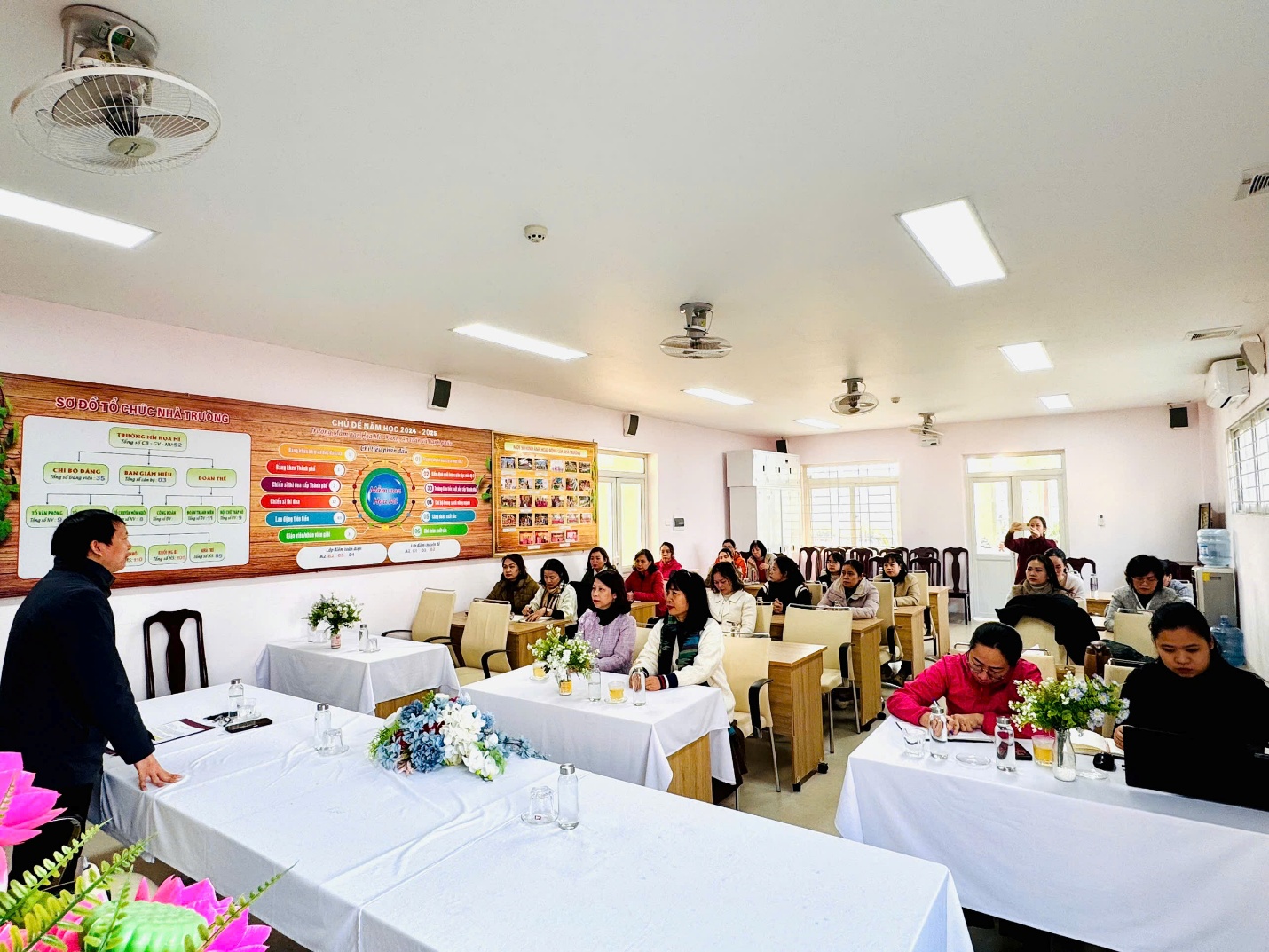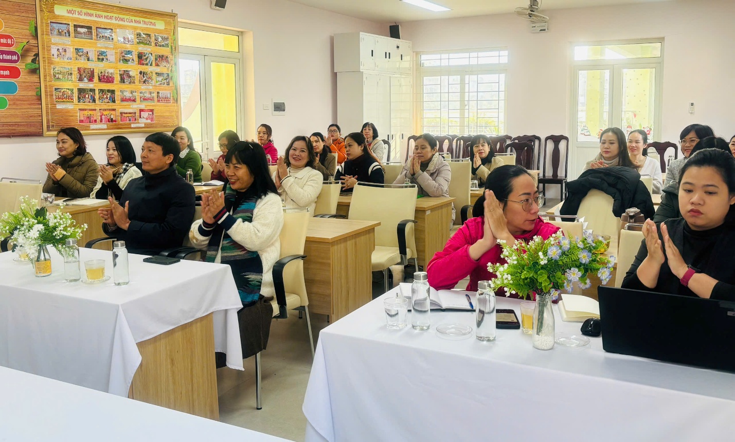 Tiếp theo sau đây là đồng chí Nguyễn Thị Thu Trang – Phó Hiệu trưởng nhà trường, người điều hành và chia sẻ nội dung bồi dưỡng tại buổi tập huấn: