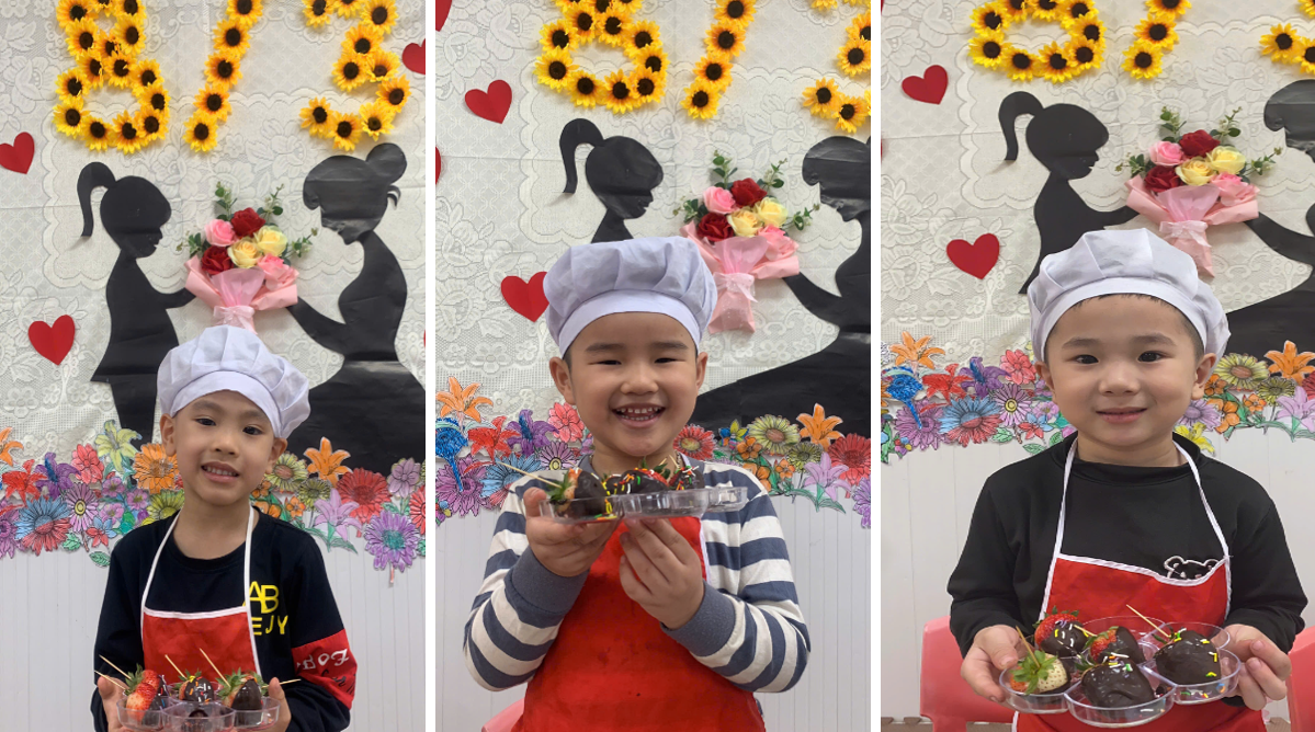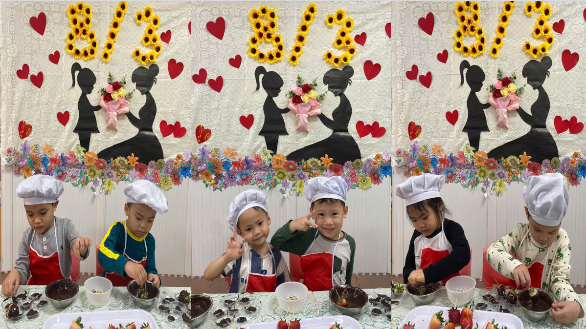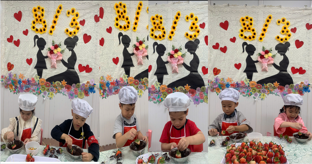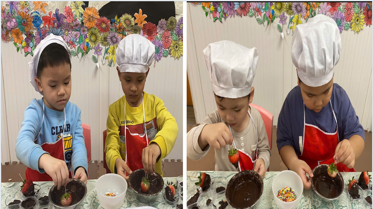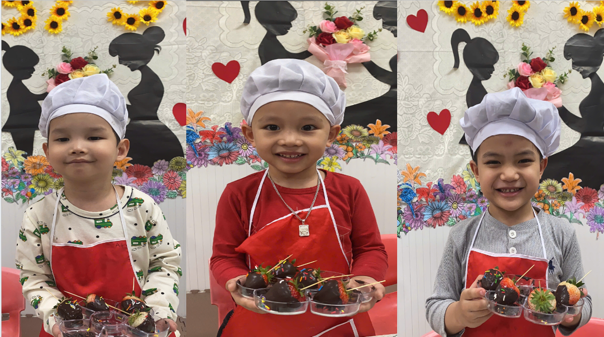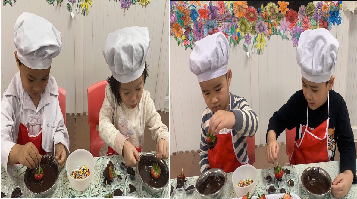 • Sáng tạo cùng Socola: Cảm giác hồi hộp khi nhúng những quả dâu vào dòng socola ấm áp, nhìn lớp vỏ nâu bóng loáng dần hiện ra khiến các con vô cùng phấn khích.
