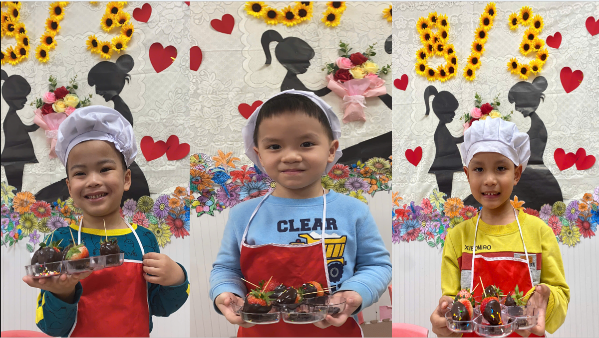 Hôm nay, căn phòng của lớp B1 bỗng trở nên ngọt ngào lạ thường. Không chỉ là mùi hương dịu nhẹ của dâu tây chín mọng hay hương thơm nồng nàn của socola, mà còn là "mùi vị" của tình yêu thương mà các con đang nâng niu chuẩn bị.