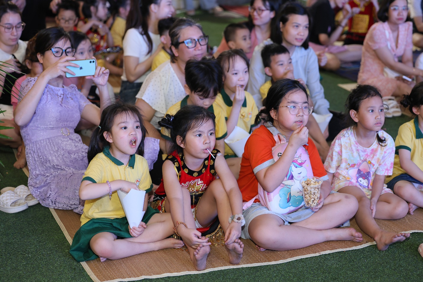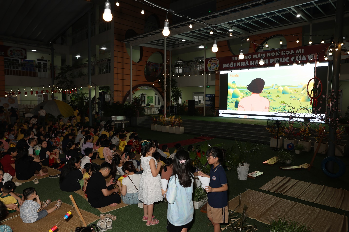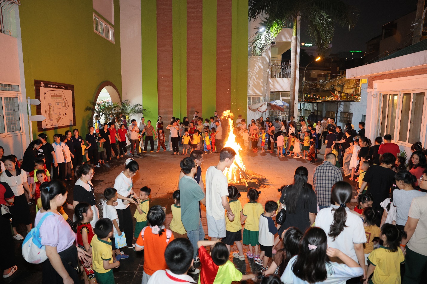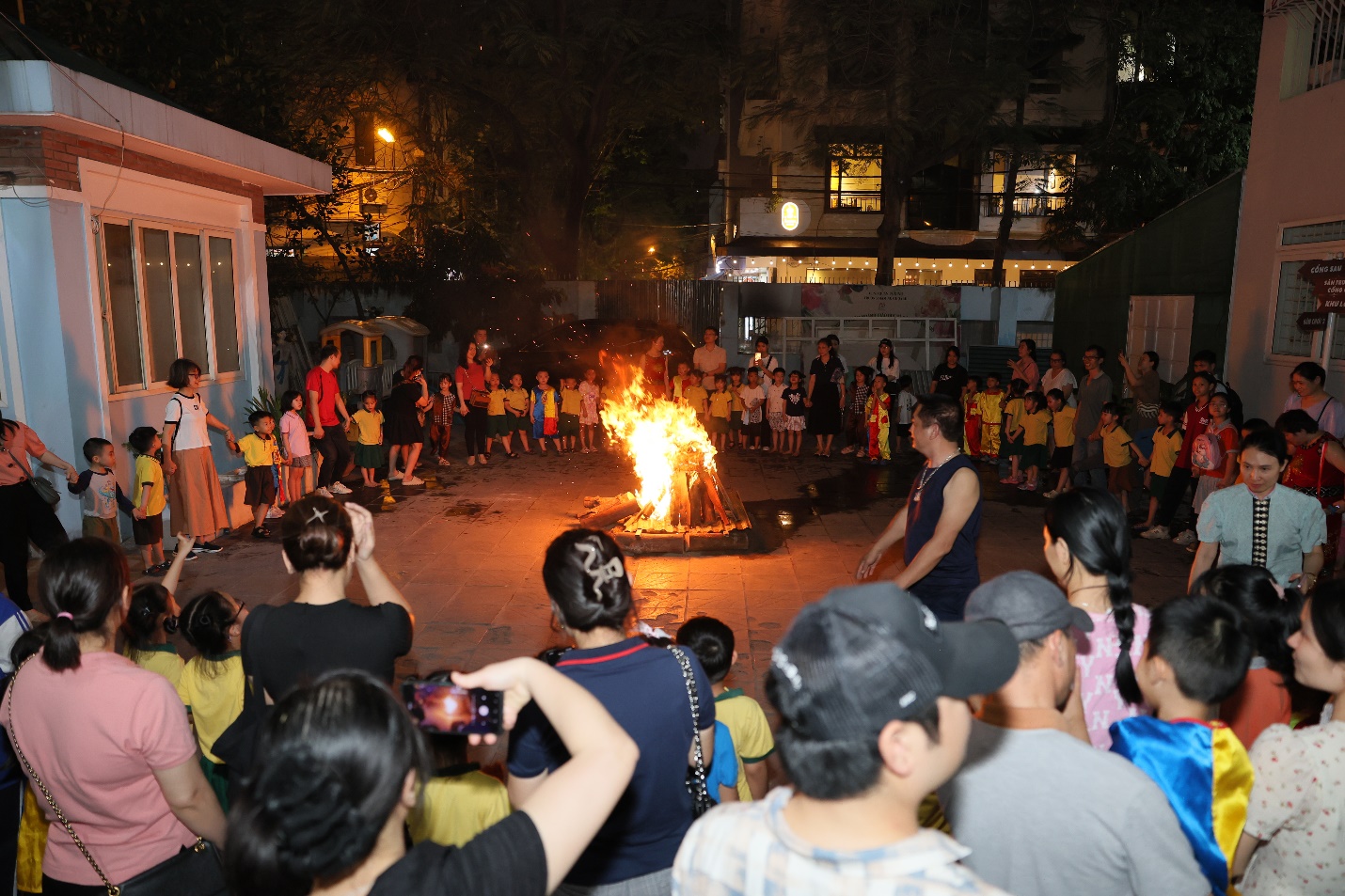 Khép lại một ngày trải nghiệm rực rỡ, các bé cùng bố mẹ và cô giáo quây quần bên nhau thưởng thức tiệc buffet, cùng xem phim hoạt hình và cháy hết mình trong khoảnh khắc đốt lửa trại đầy ấm áp và lung linh – những ký ức tuổi thơ mà các con sẽ nhớ mãi.