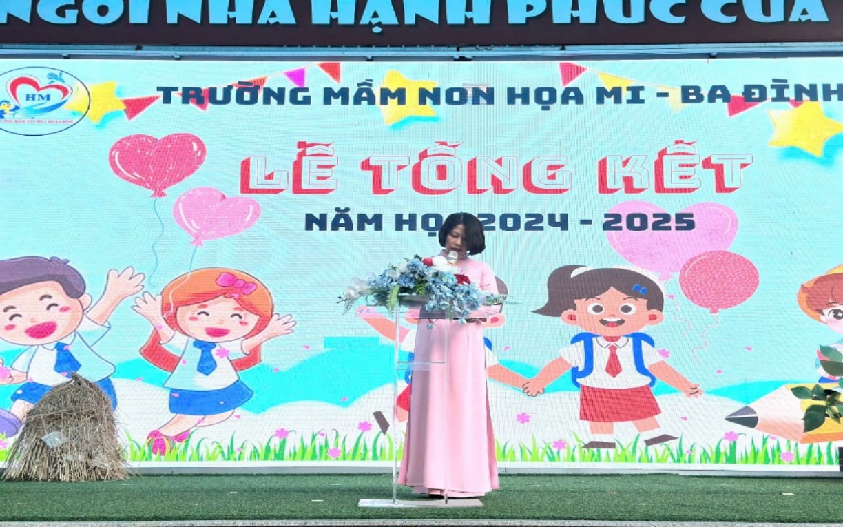 🎤 Sau phần văn nghệ mở màn, cô Phó Hiệu trưởng nhà trường - Nguyễn Thu Trang đã lên phát biểu tổng kết năm học, gửi lời cảm ơn chân thành tới quý phụ huynh, đội ngũ giáo viên và đặc biệt là các bé đã luôn cố gắng, chăm ngoan, khôn lớn từng ngày.