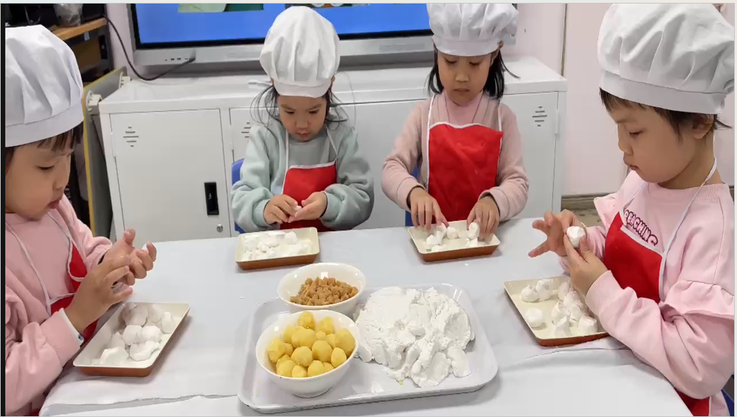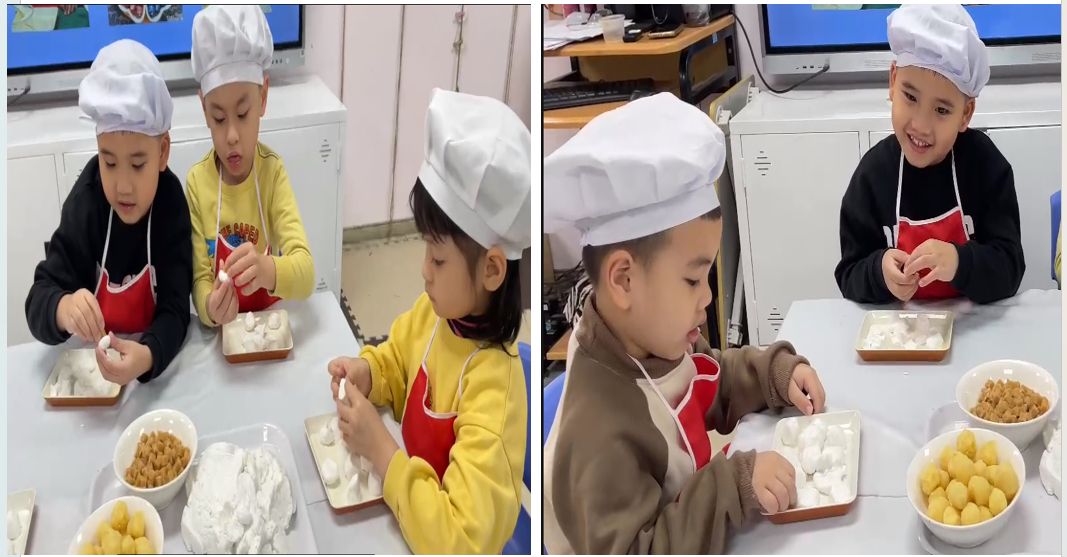 Các con trong hoạt động làm bánh trôi- bánh chay nhân ngày Têt Hàn Thực