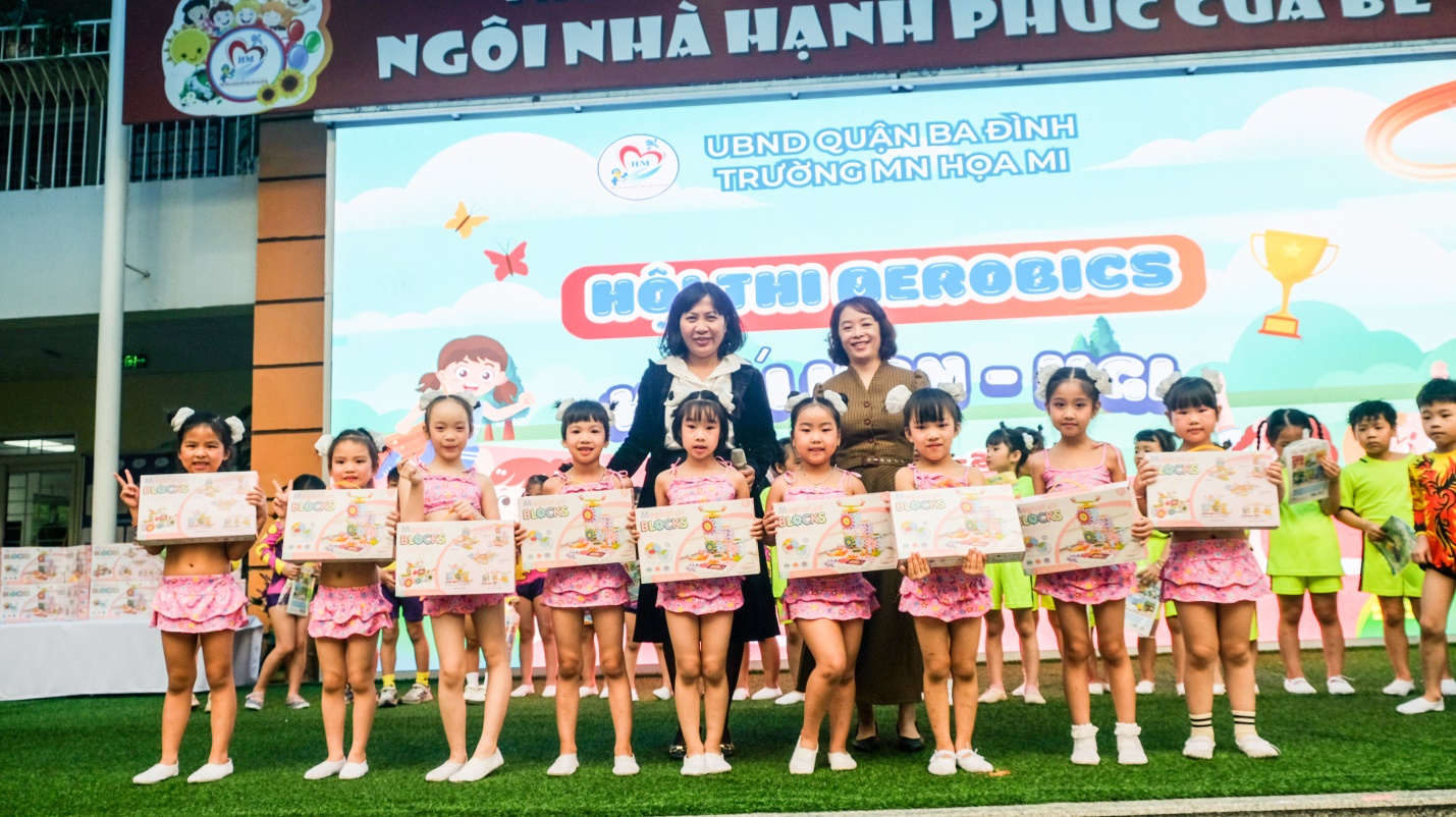 Ngoài ra, đội Aerobic trường Mầm non Họa Mi cũng đạt thành tích xuất sắc, là 1 trong 7 trường tiêu biểu của Liên hoan “Bé khỏe – Bé ngoan” cấp Quận, trong đó, có 4 bạn lớp A1 tham gia tập luyện: Ngô Lâm Vũ, Nguyễn Tuệ Lâm, Trần Thanh Nhân, Vũ Diệp Thảo Nguyên.