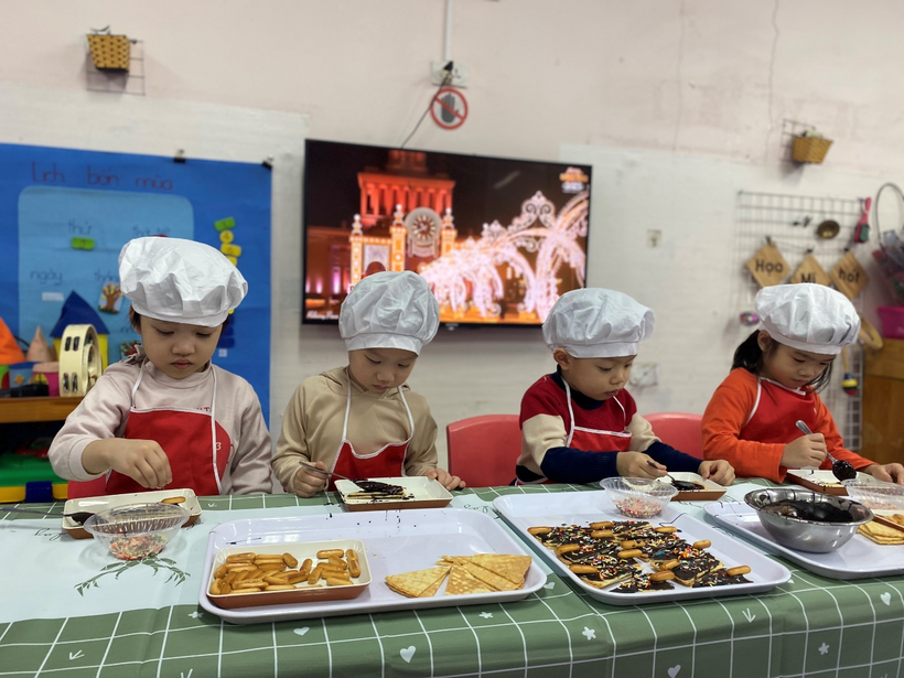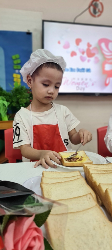 Hàng tháng, trẻ được cùng cô và bạn tham gia hoạt động Bé tập làm nội trợ giúp trẻ có được những kỹ năng mới, vận động thô, tinh qua các hoạt động: xúc thìa, kẹp, gắp, tẽ ngô…. Được trải nghiệm với đồ ăn – vật thật để trẻ có cảm giác như mình là những người lớn thực thụ.