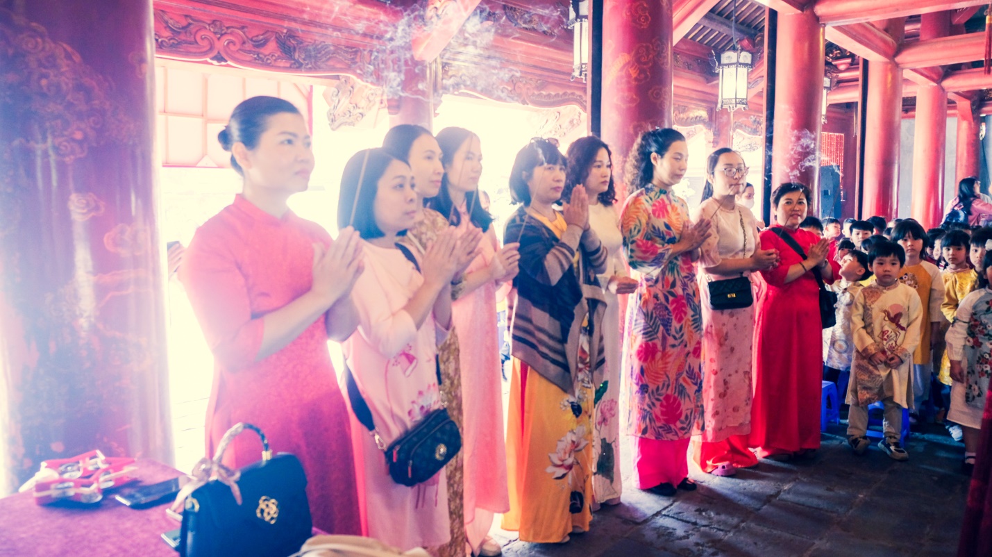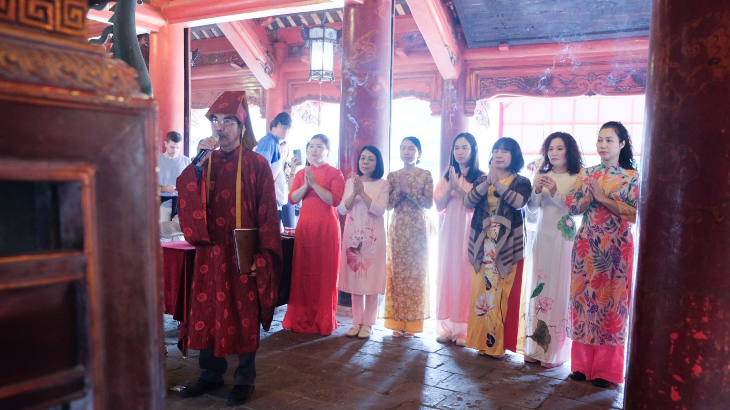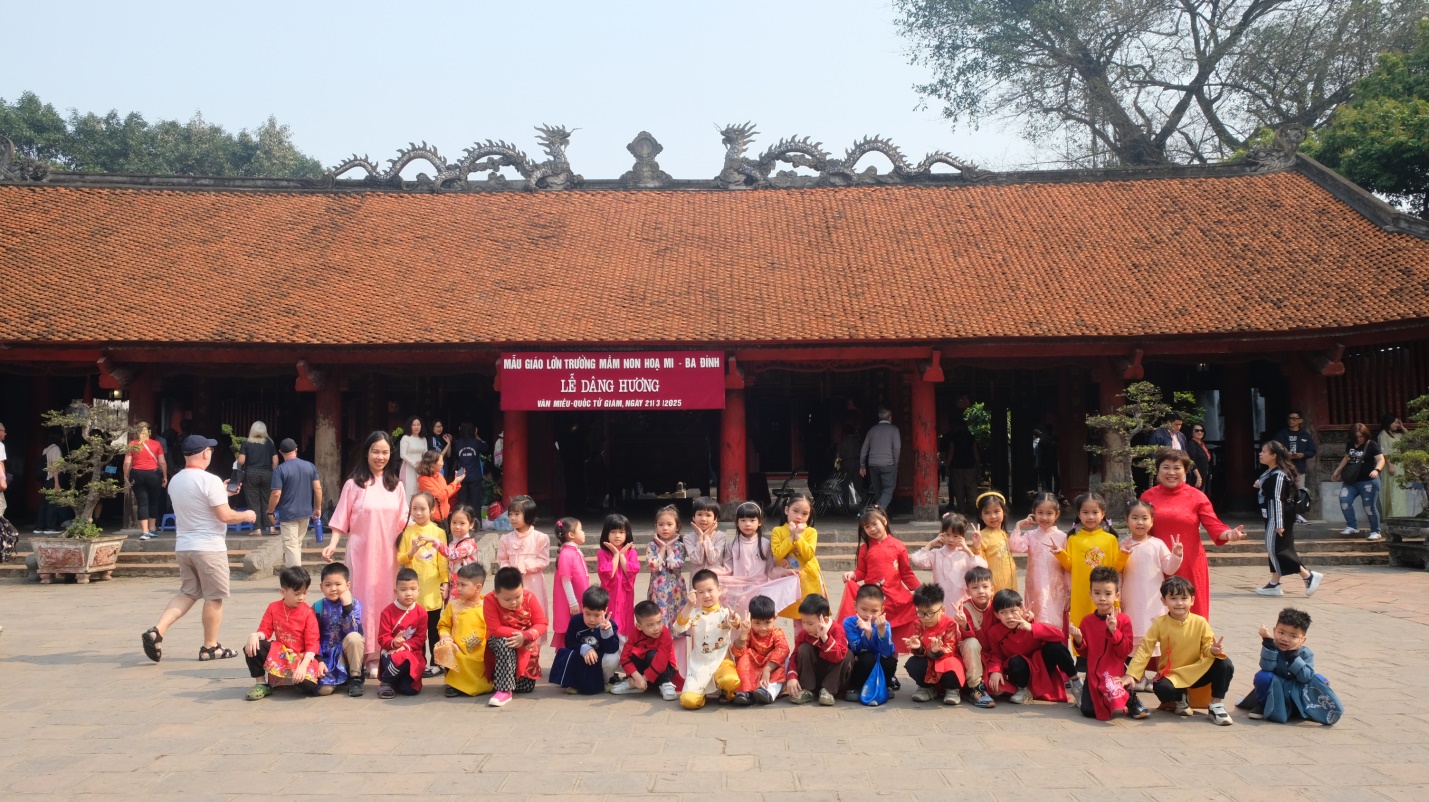 Tại khu di tích, các bé đã tham gia buổi lễ dâng hương vô cùng trang trọng. Dưới sự hướng dẫn của Ban tổ chức, các bé xếp hàng ngay ngắn, cùng cô giáo nâng những nén hương thơm với sự thành kính, bày tỏ lòng biết ơn đến các bậc hiền triết, những người đã có công gìn giữ và phát triển nền giáo dục nước nhà. Không khí trang nghiêm của buổi lễ giúp các bé thêm phần hiểu rõ hơn về sự tôn kính dành cho các bậc tiền nhân.
