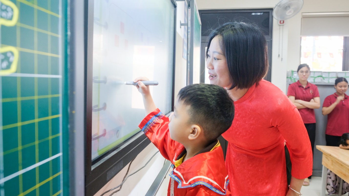 Dưới sự hướng dẫn tận tình của các cô giáo, các bé được tham quan các lớp học khang trang, gọn gàng và được giới thiệu về cách sắp xếp bàn ghế, bảng viết, giá sách – những điều hoàn toàn mới mẻ với các con. Đỉnh điểm của chuyến tham quan là khi các bé được tham dự vào một tiết học của lớp Một. Đây là trải nghiệm vô cùng đáng nhớ, giúp các bé hiểu hơn về cách học tập, cách cô giáo giảng bài và cách các anh chị giơ tay phát biểu. Nhìn những ánh mắt chăm chú và những bàn tay bé nhỏ hào hứng giơ lên khi cô giáo đặt câu hỏi, ai nấy đều cảm nhận được sự thích thú và khát khao học hỏi của các con.