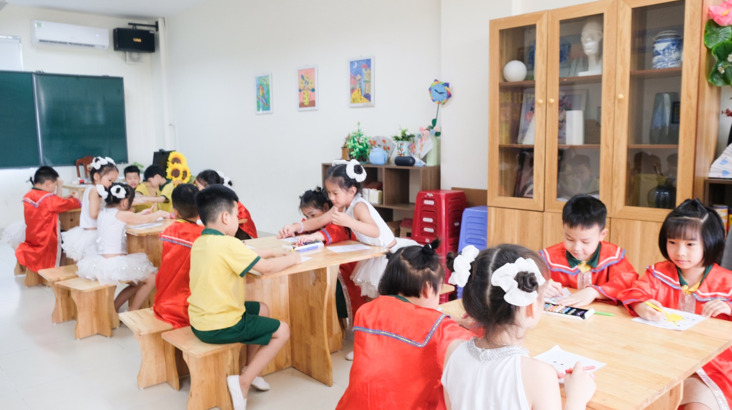 Đặc biệt, phòng nghệ thuật với những bức tranh sinh động, sắc màu tươi sáng đã khơi dậy sự tò mò và niềm thích thú cho các bé.