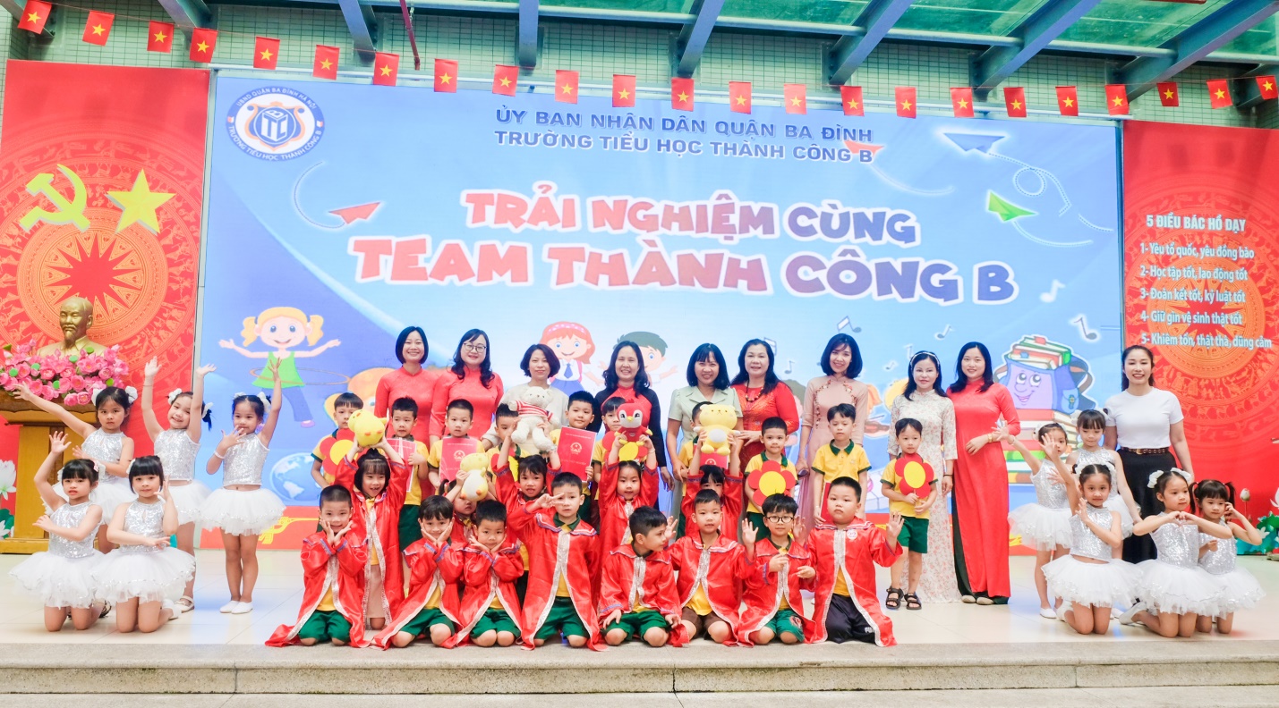 Ngay từ khi đặt chân đến cổng trường Tiểu học Thành Công B, các bé đã được cô giáo và các anh chị lớp Một chào đón bằng những nụ cười rạng rỡ và cái vẫy tay thân thiện. Không khí ấm áp và gần gũi khiến các con cảm thấy thoải mái, tự tin hơn để bắt đầu hành trình khám phá.