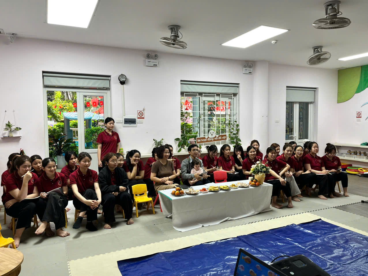 Đối với các em sinh viên, tiết dự giờ tại lớp Nhà trẻ hôm nay là một bài học thực tế sống động. Các em không chỉ quan sát cách cô giáo tổ chức hoạt động, mà còn học được: