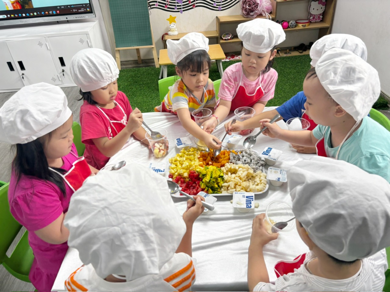 Bé làm hoa quả trộn mang về tặng bà, tặng mẹ
