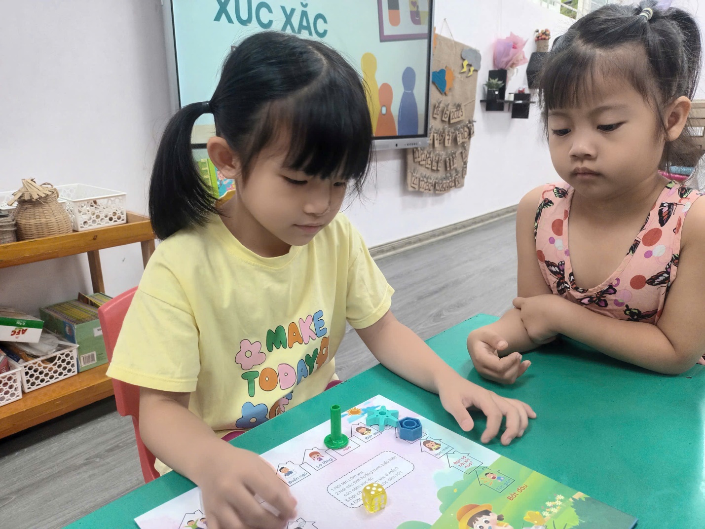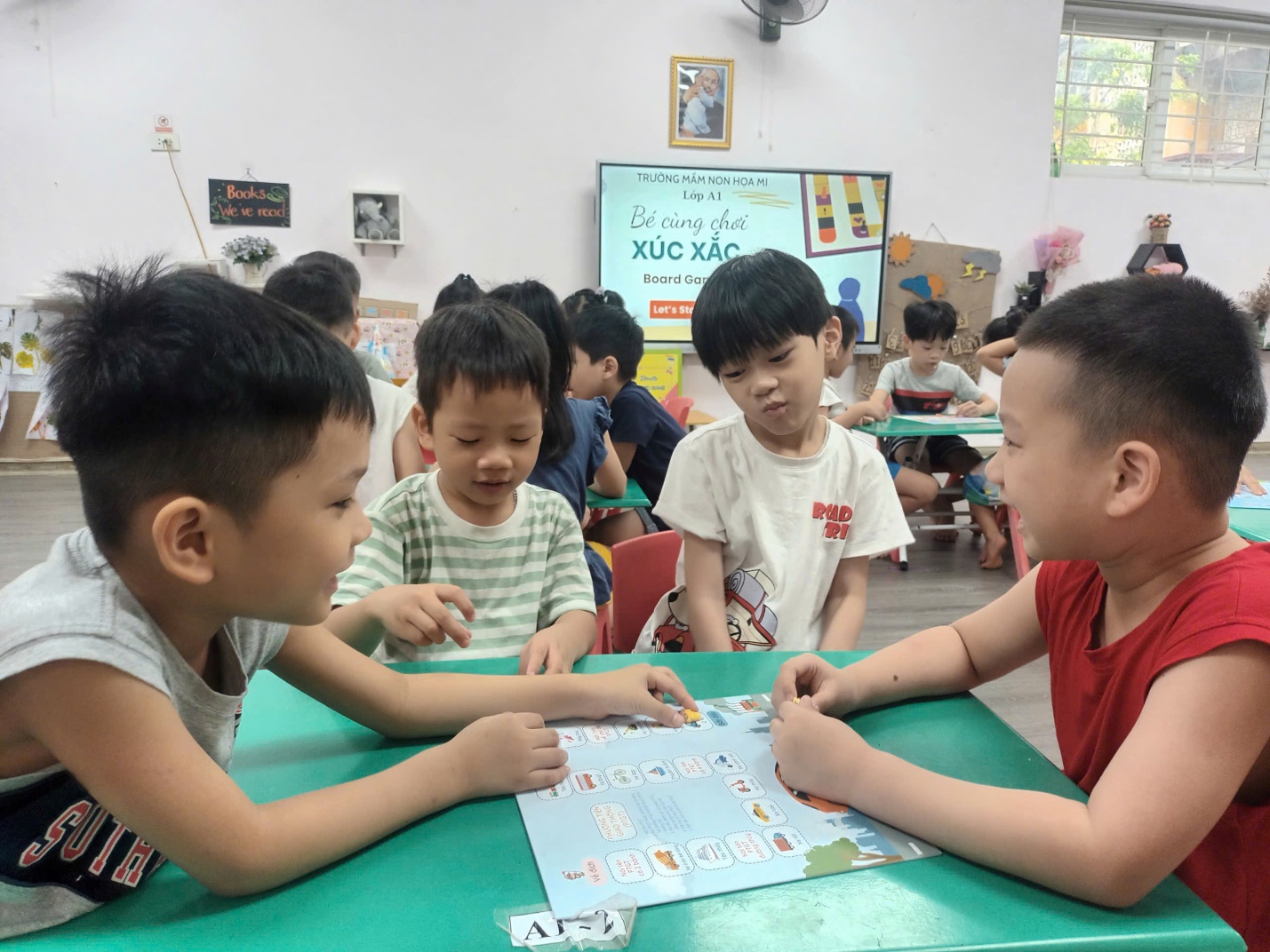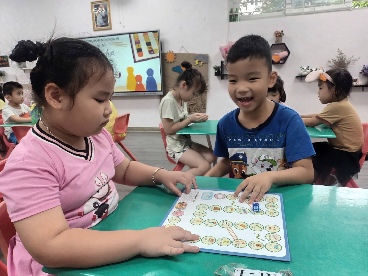 “Trẻ học nhanh nhất khi các con được tham gia vào trò chơi có chủ đích. Thông qua hoạt động như xúc xắc board game, các con không chỉ ôn kiến thức một cách tự nhiên mà còn học cách lắng nghe, đặt câu hỏi và diễn đạt rõ ràng suy nghĩ của mình.”