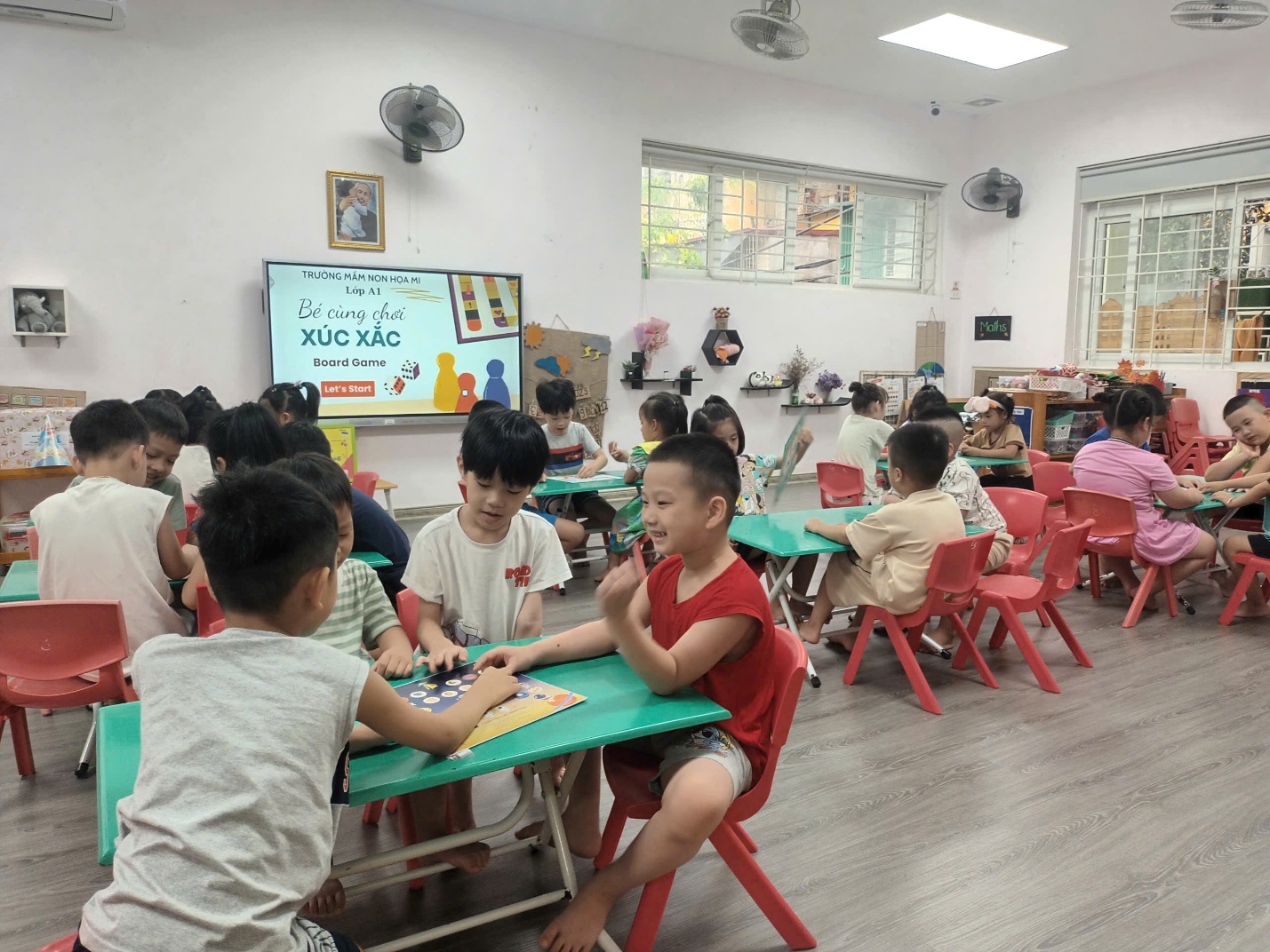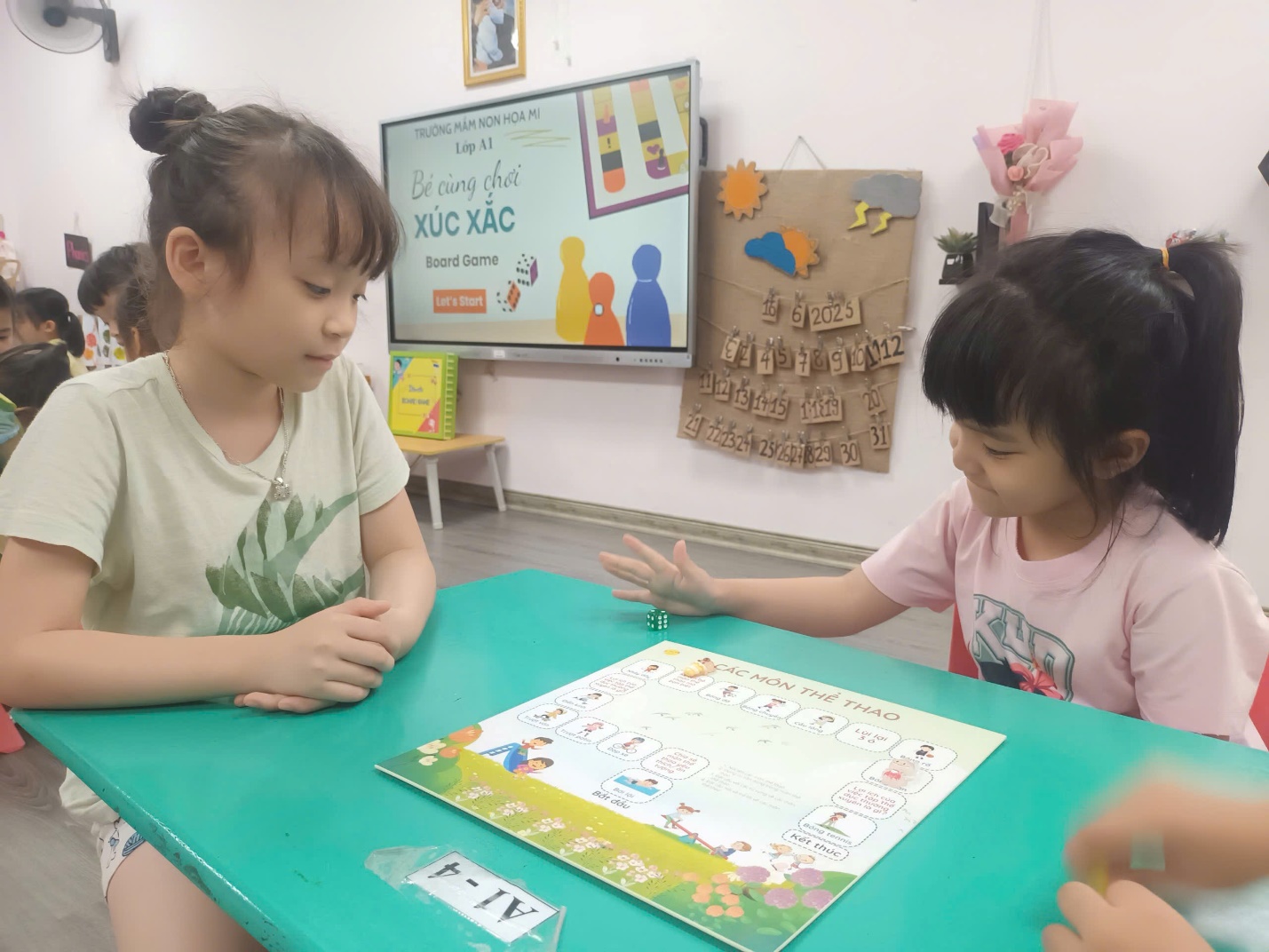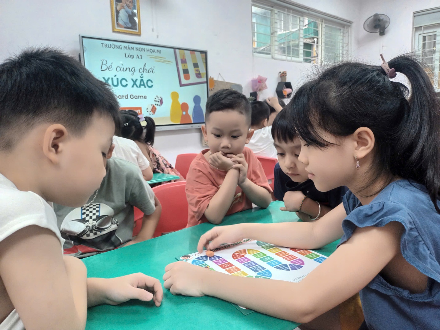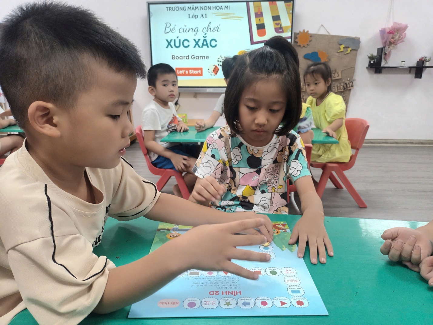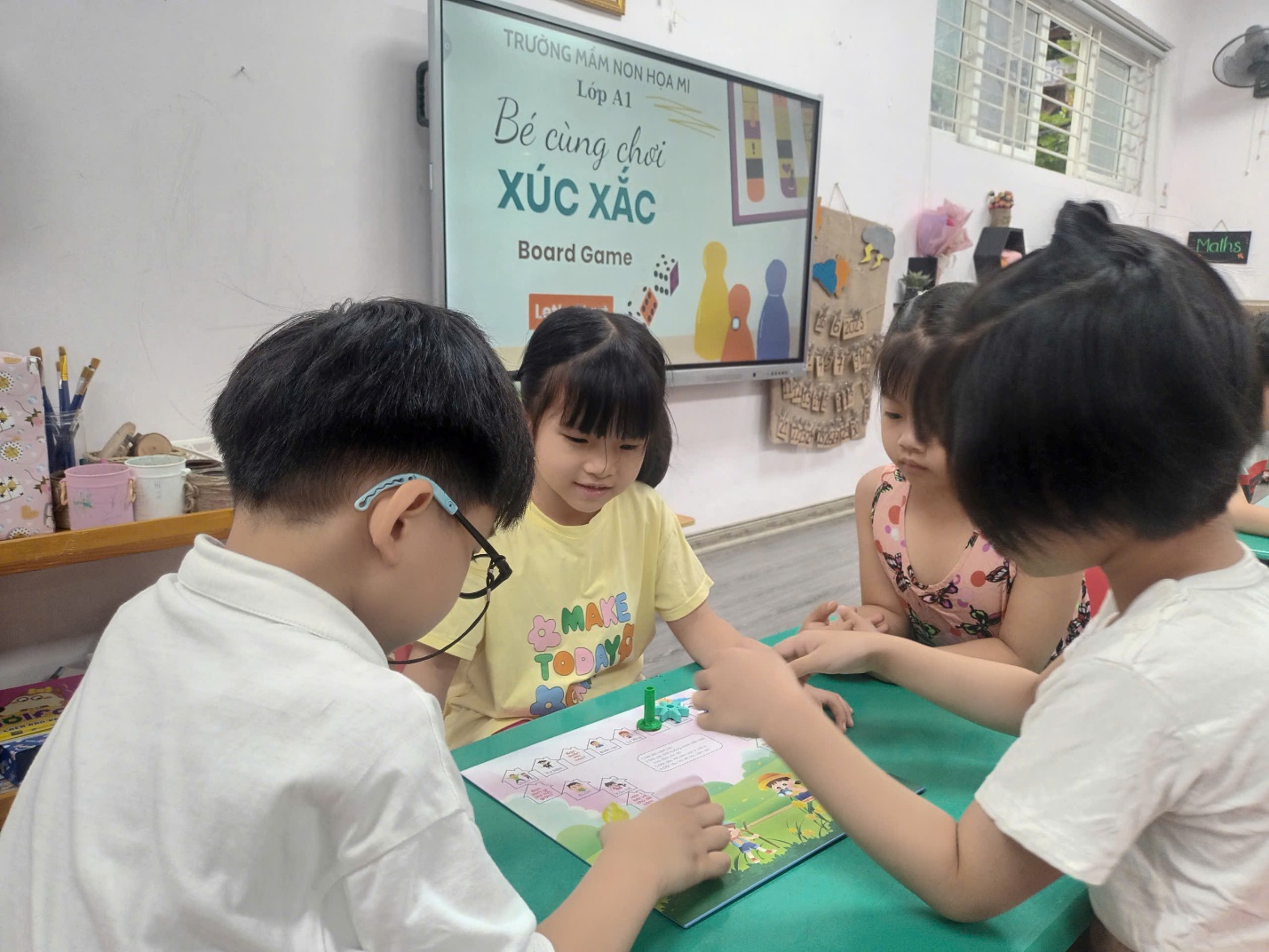 Với mục tiêu phát triển ngôn ngữ, tư duy logic và khả năng giao tiếp theo ngữ cảnh cho trẻ mẫu giáo lớn, các cô giáo lớp A1 trường Mầm non Họa Mi đã tổ chức một hoạt động trải nghiệm thú vị mang tên “Xúc xắc vui nhộn” – một dạng trò chơi board game học tập tích hợp đa chủ đề, được thiết kế riêng phù hợp với độ tuổi và nội dung chương trình giáo dục mầm non.